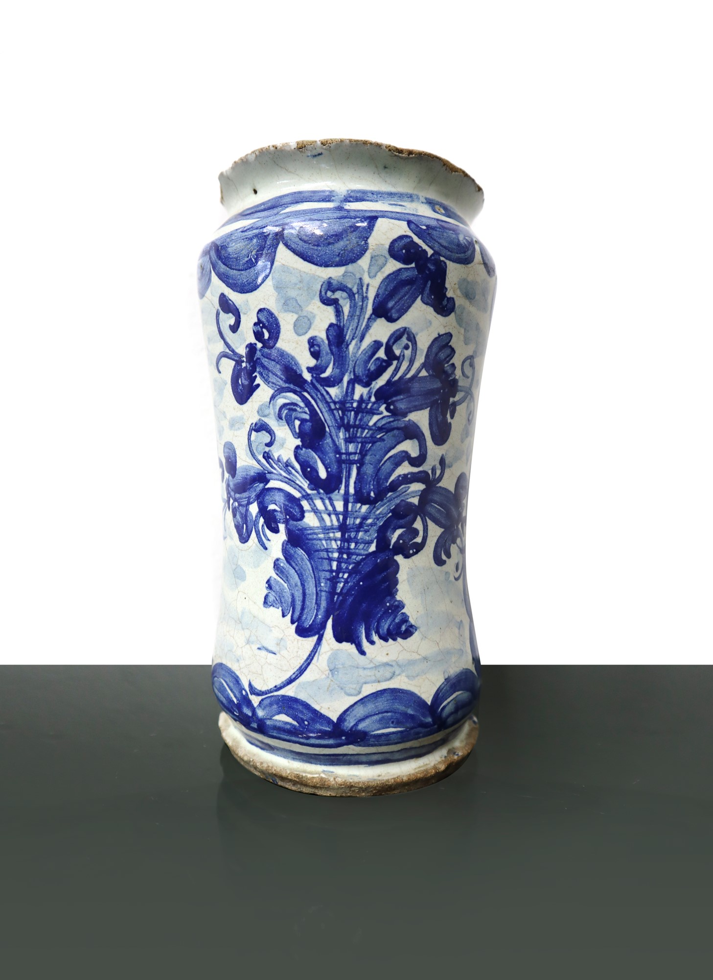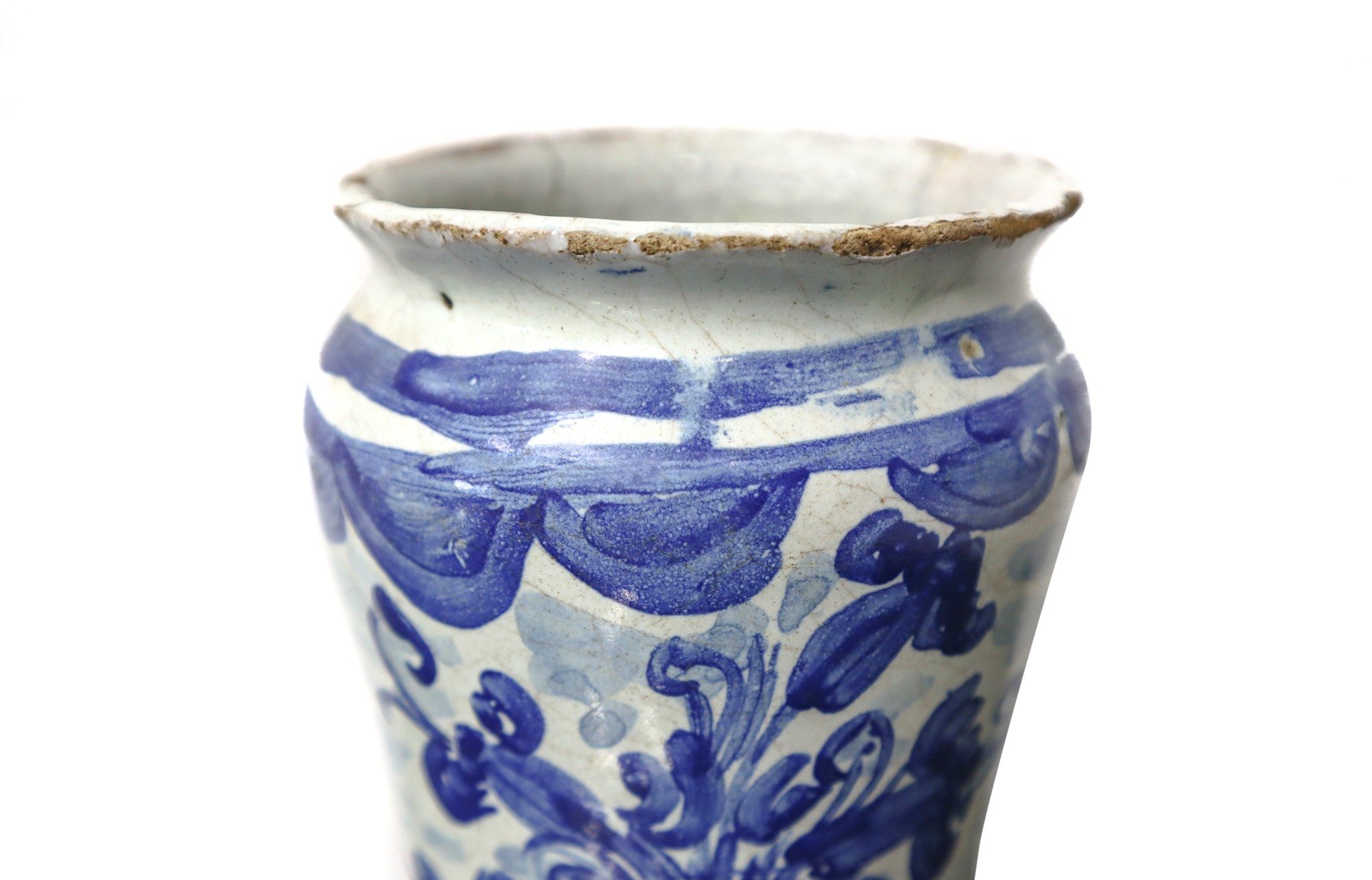 CM 20 Albarello in maiolica di Napoli Con fiori blu su fondo bianco