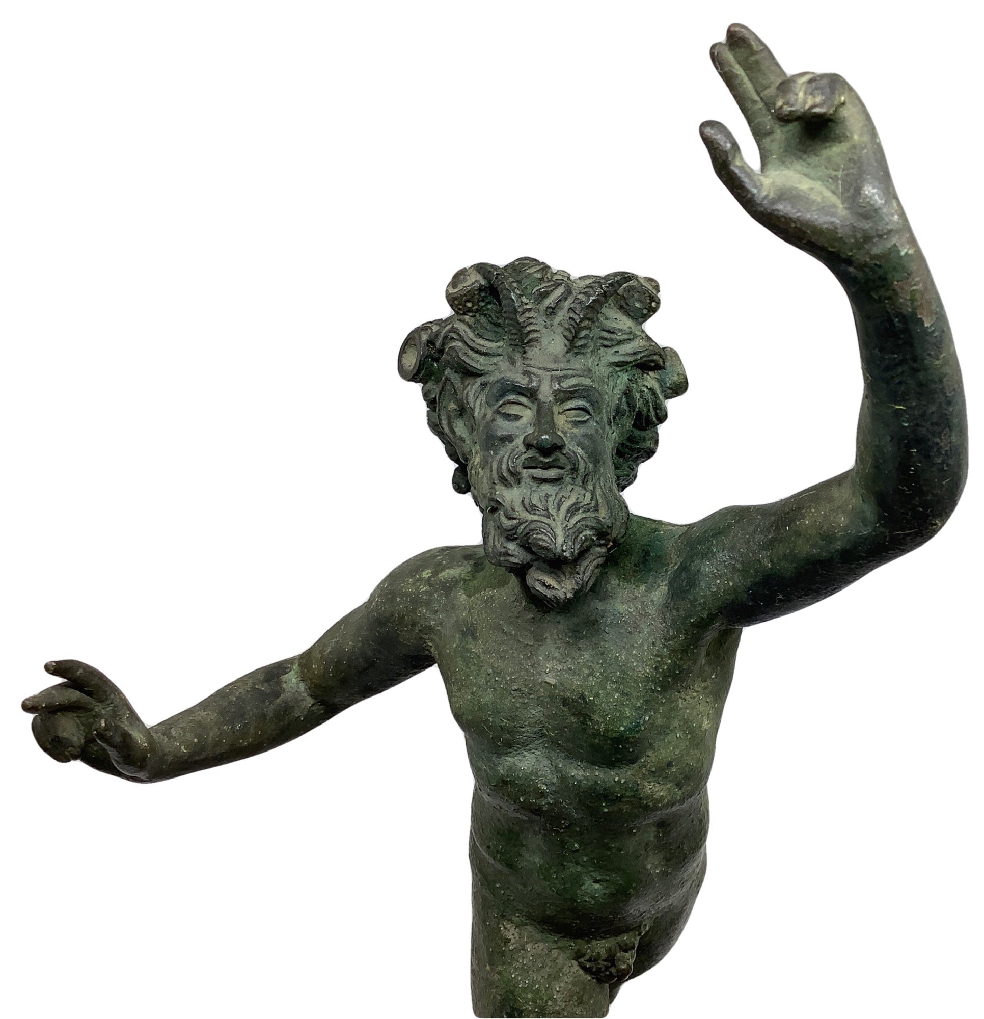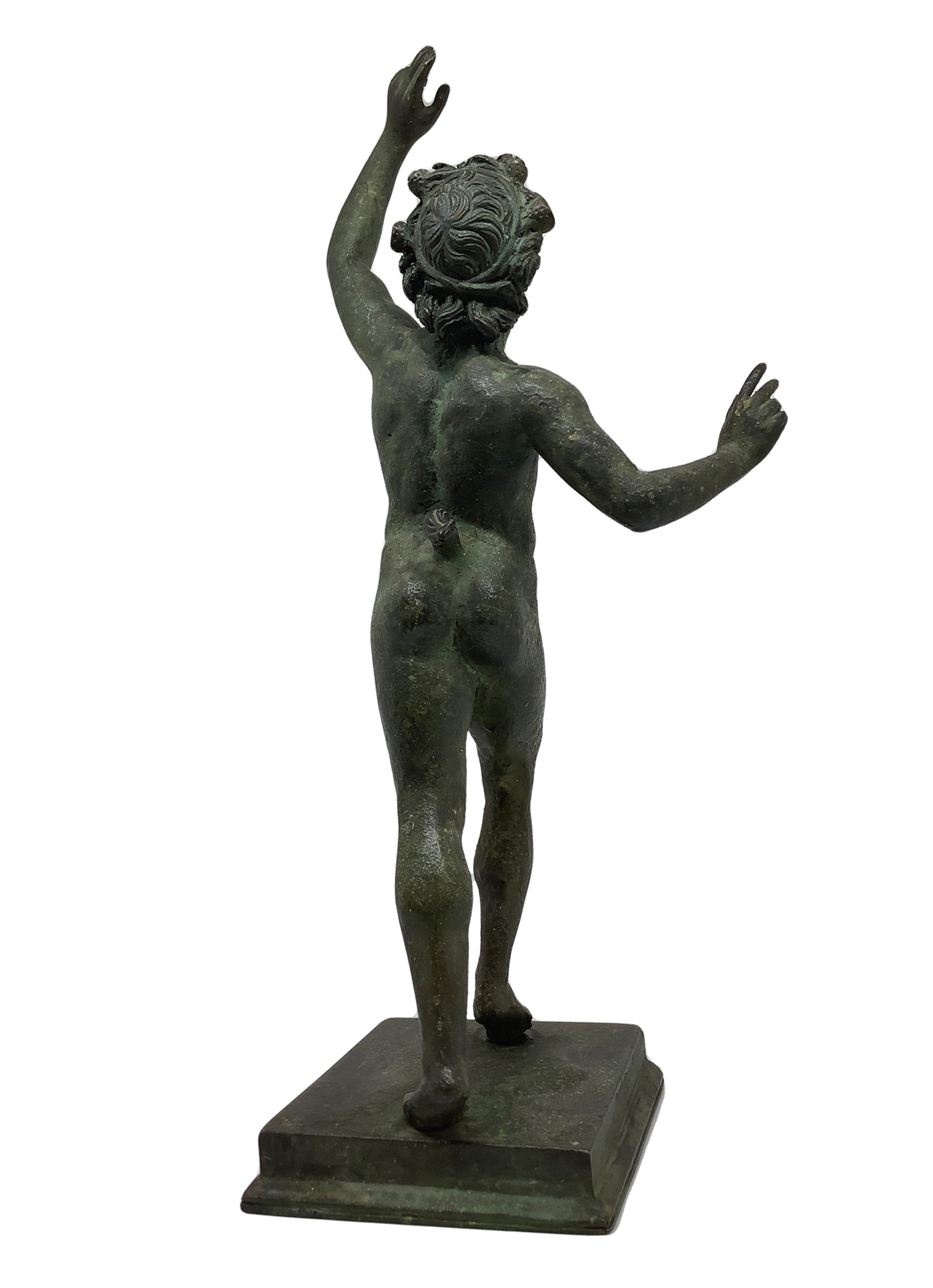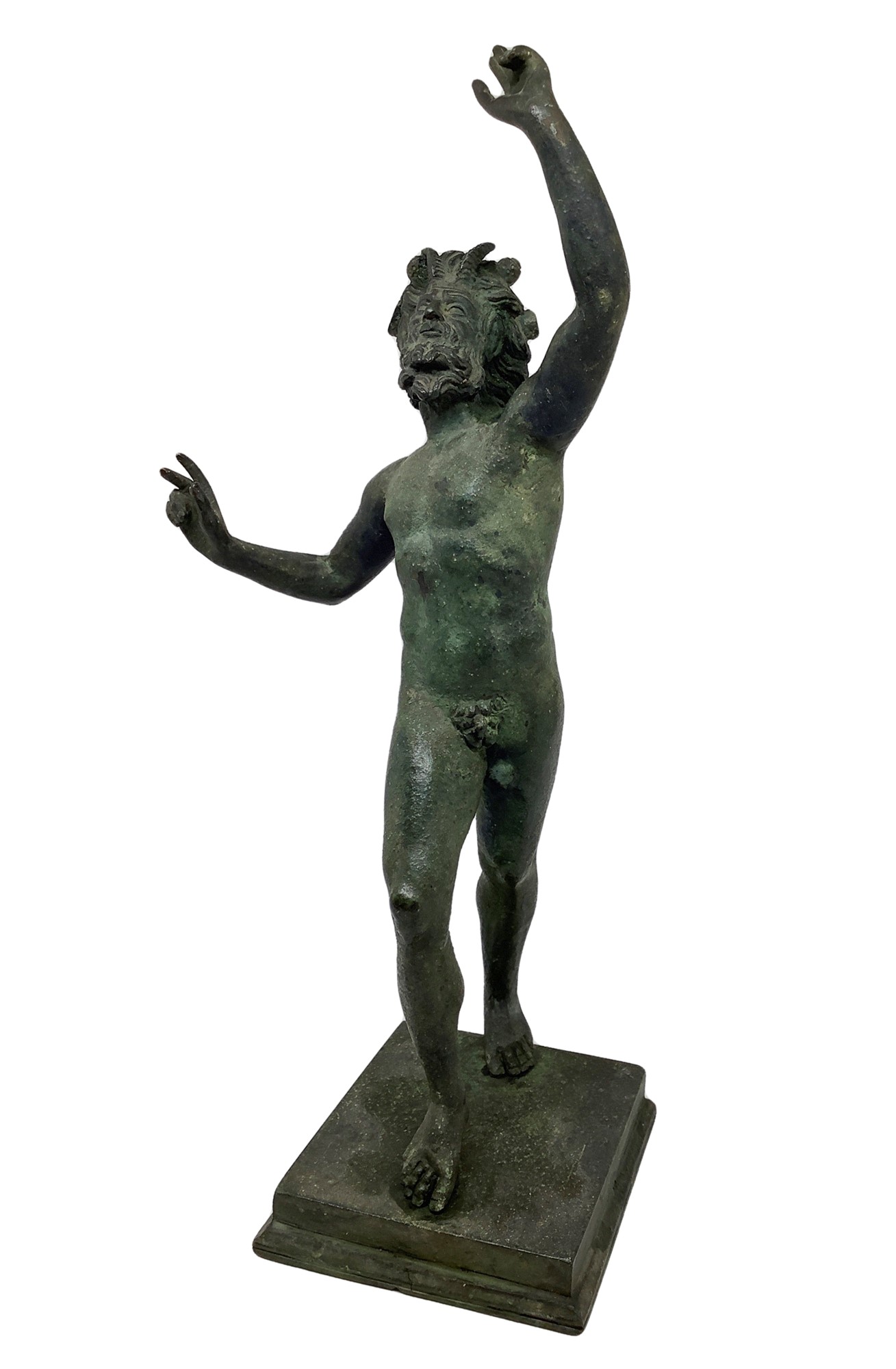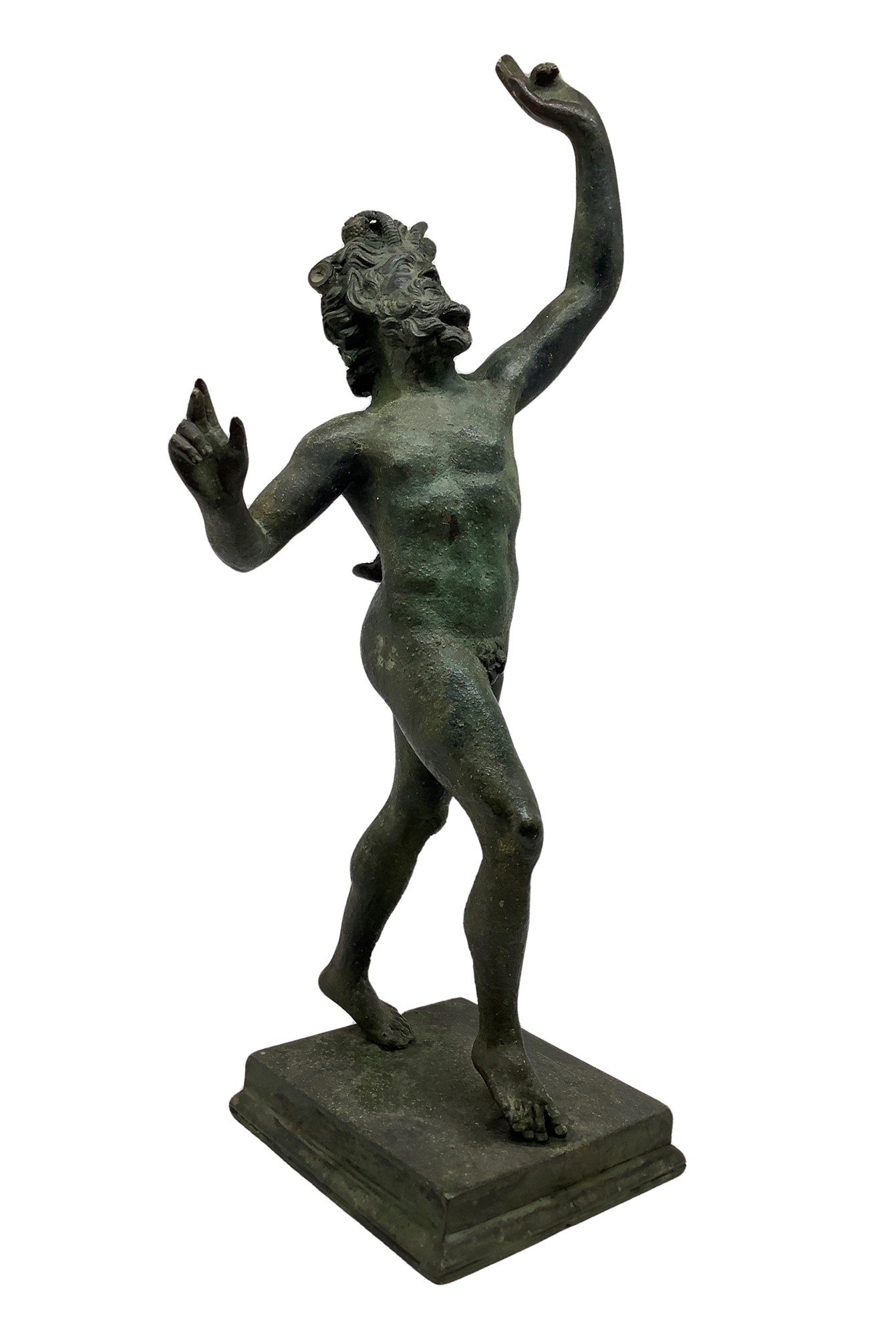 Scultura bronzo patinato verde raffigurante Fauno danzante di Pompei, Late 19th century