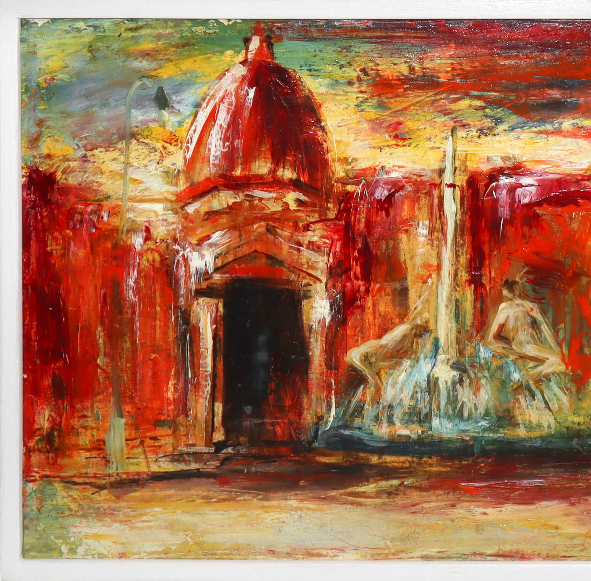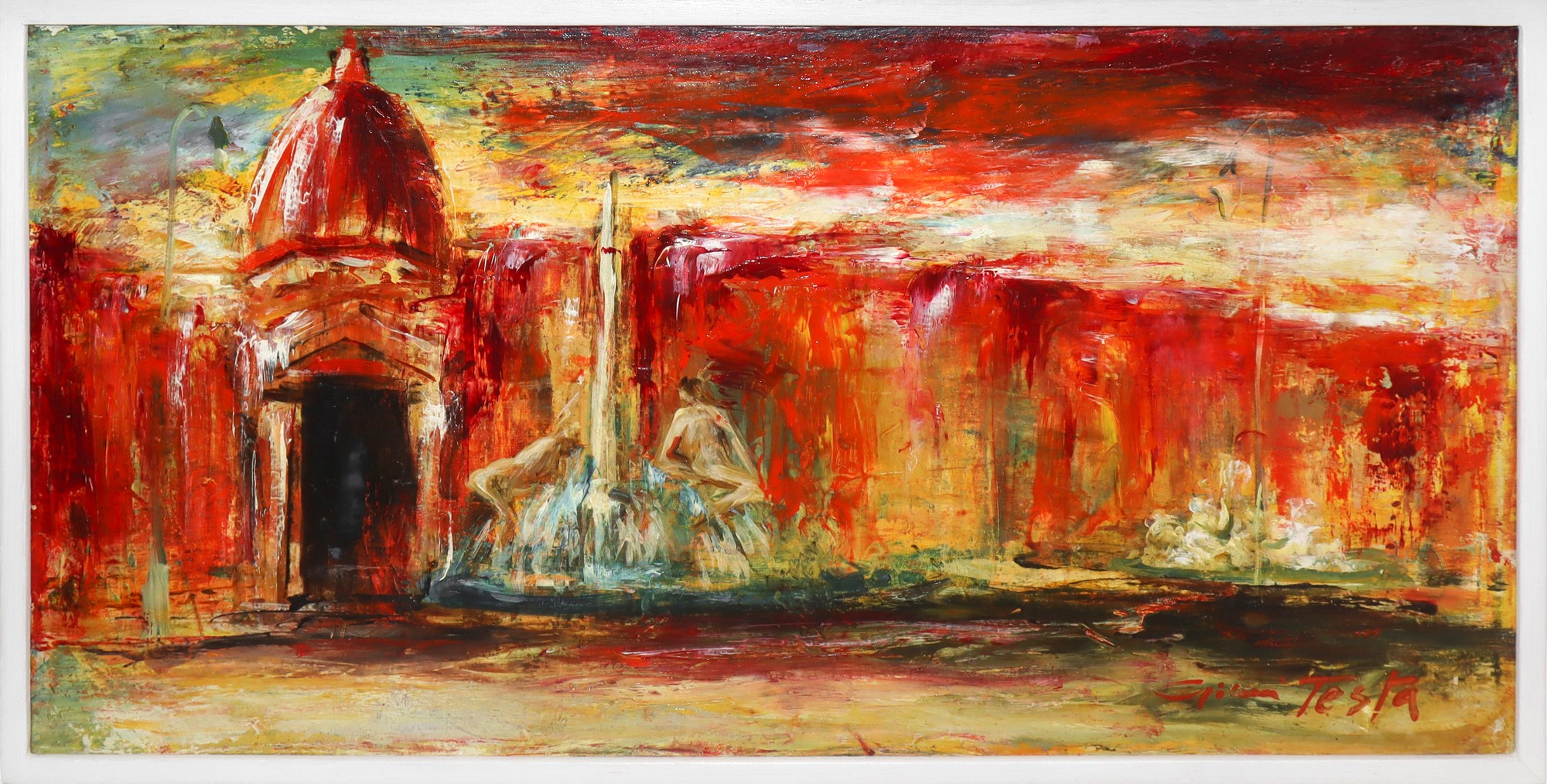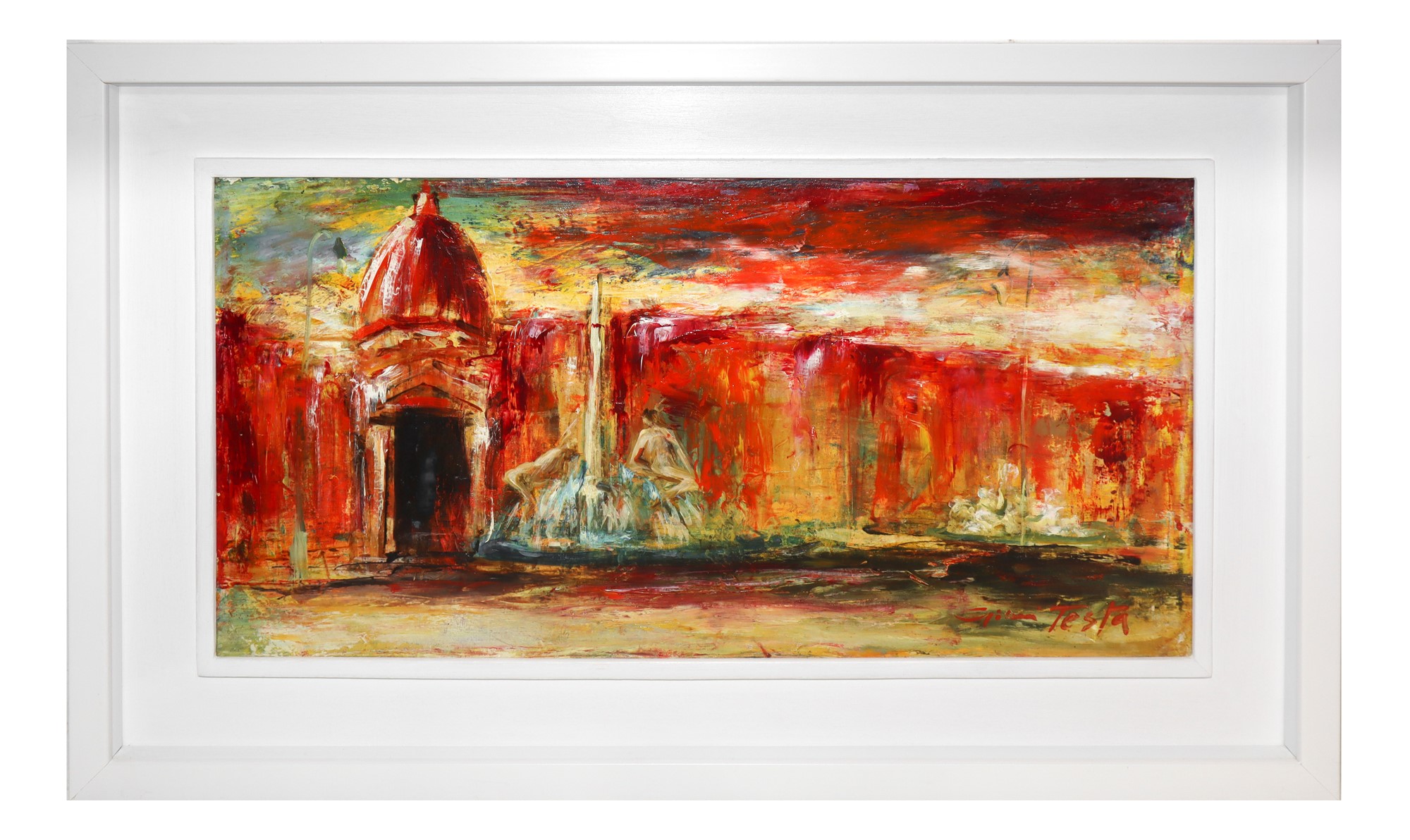 cm 25 x cm 50, in cornice cm 39 x cm 64 Piazza Navona Olio su tela Firmato in basso a destra sul fronte, firma, titolo, archivio al retro, etichetta della Catania ArtGallery al retro