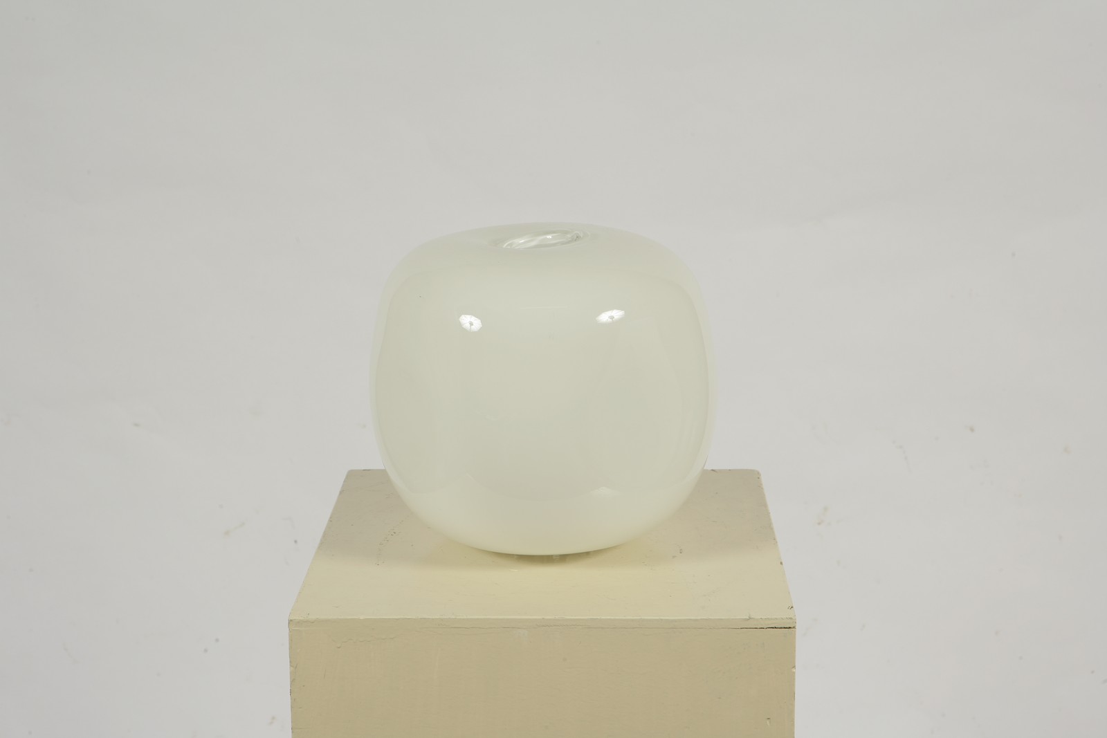 BARBINI ALFREDO. Lampadario a sfera in vetro bianco opaco. Ball lamp in dull white glass. Vetro. Cm 27x29x27. 1960.