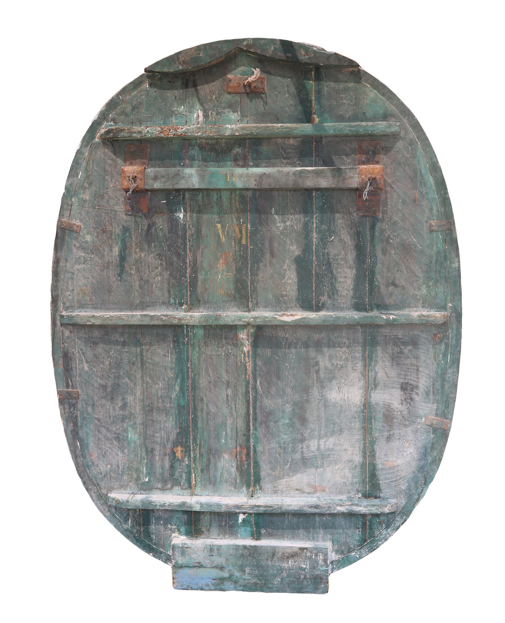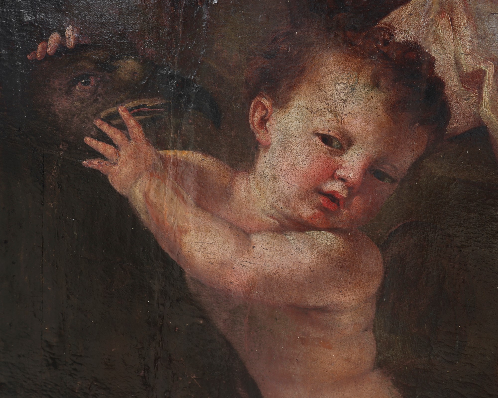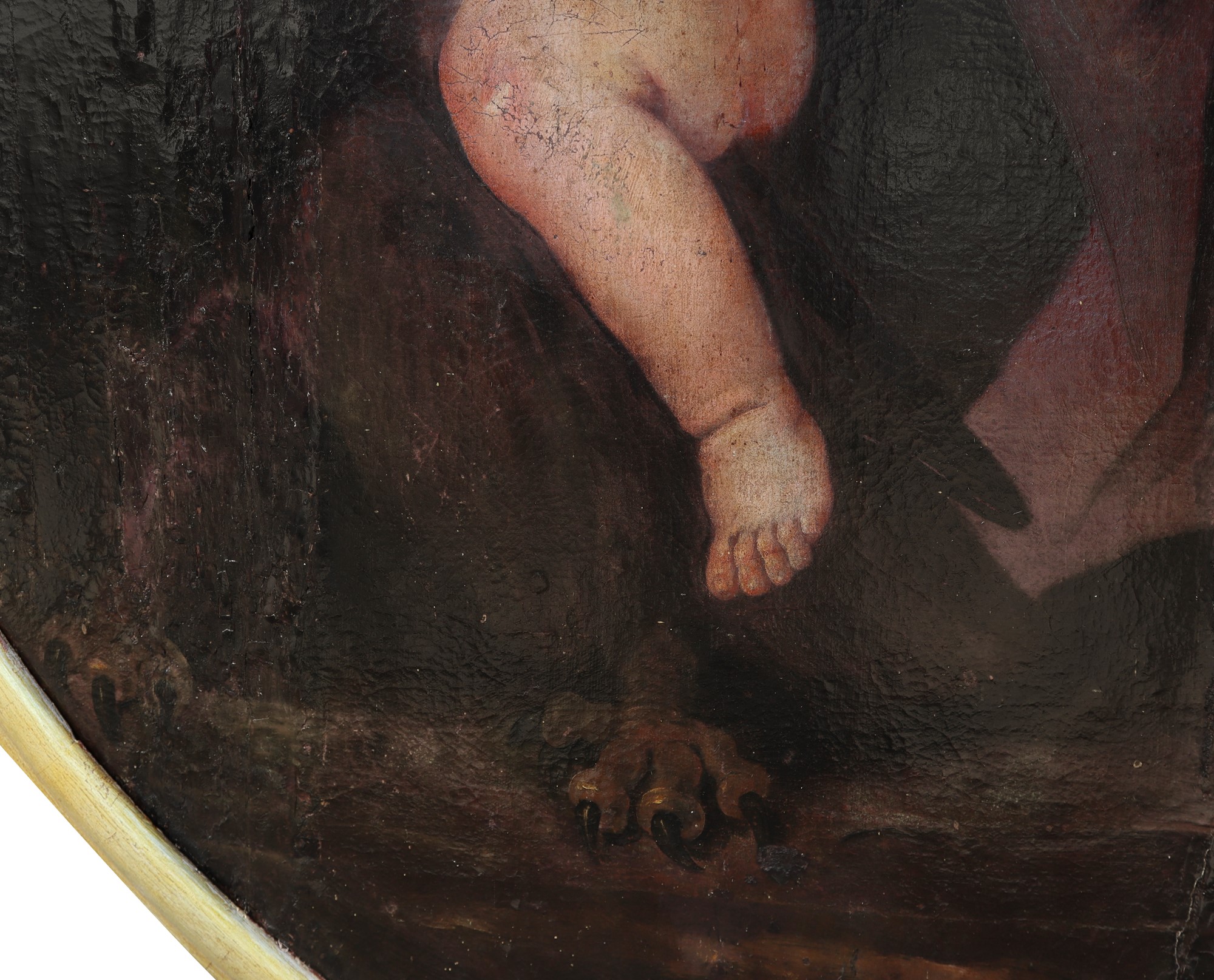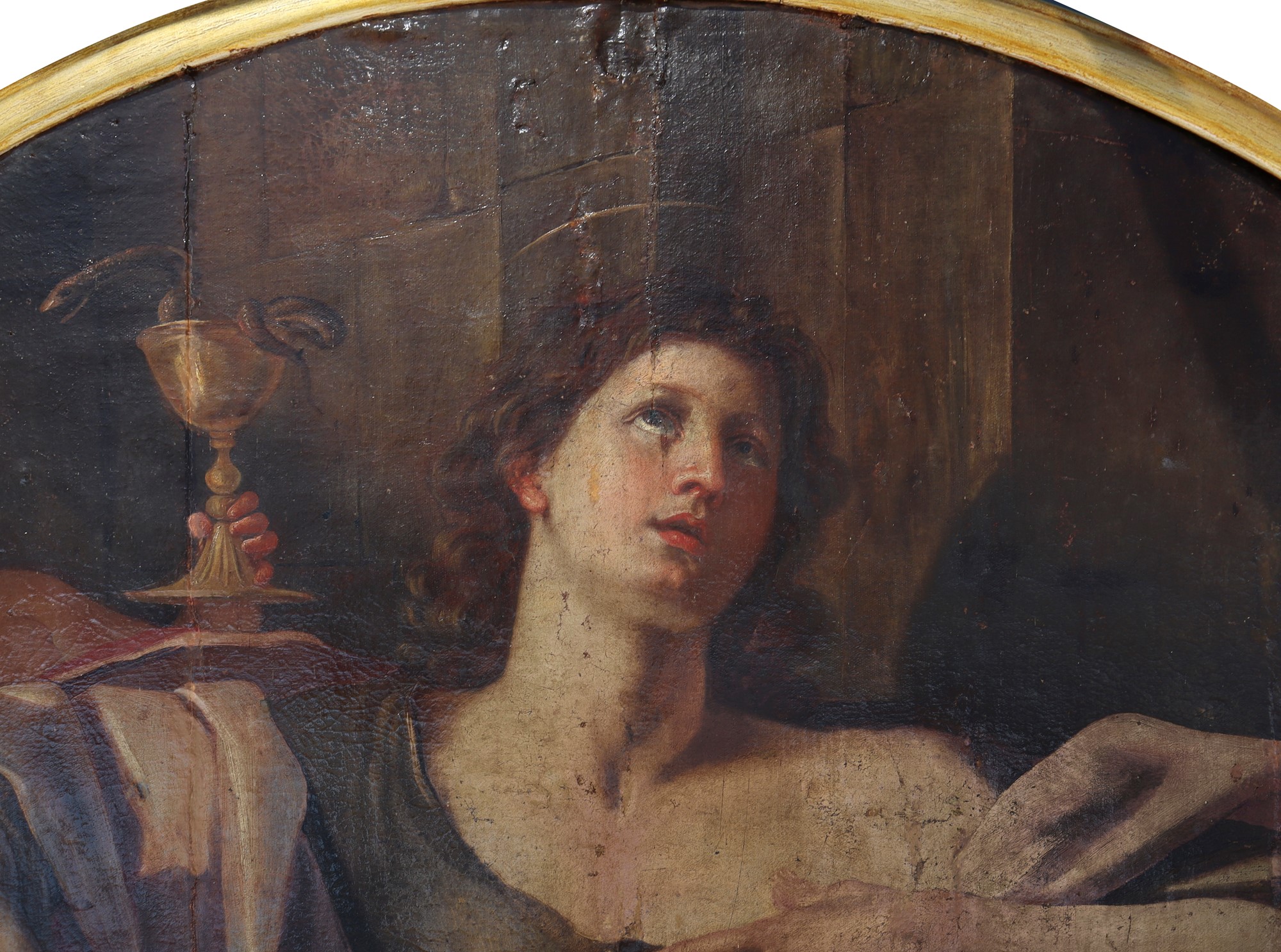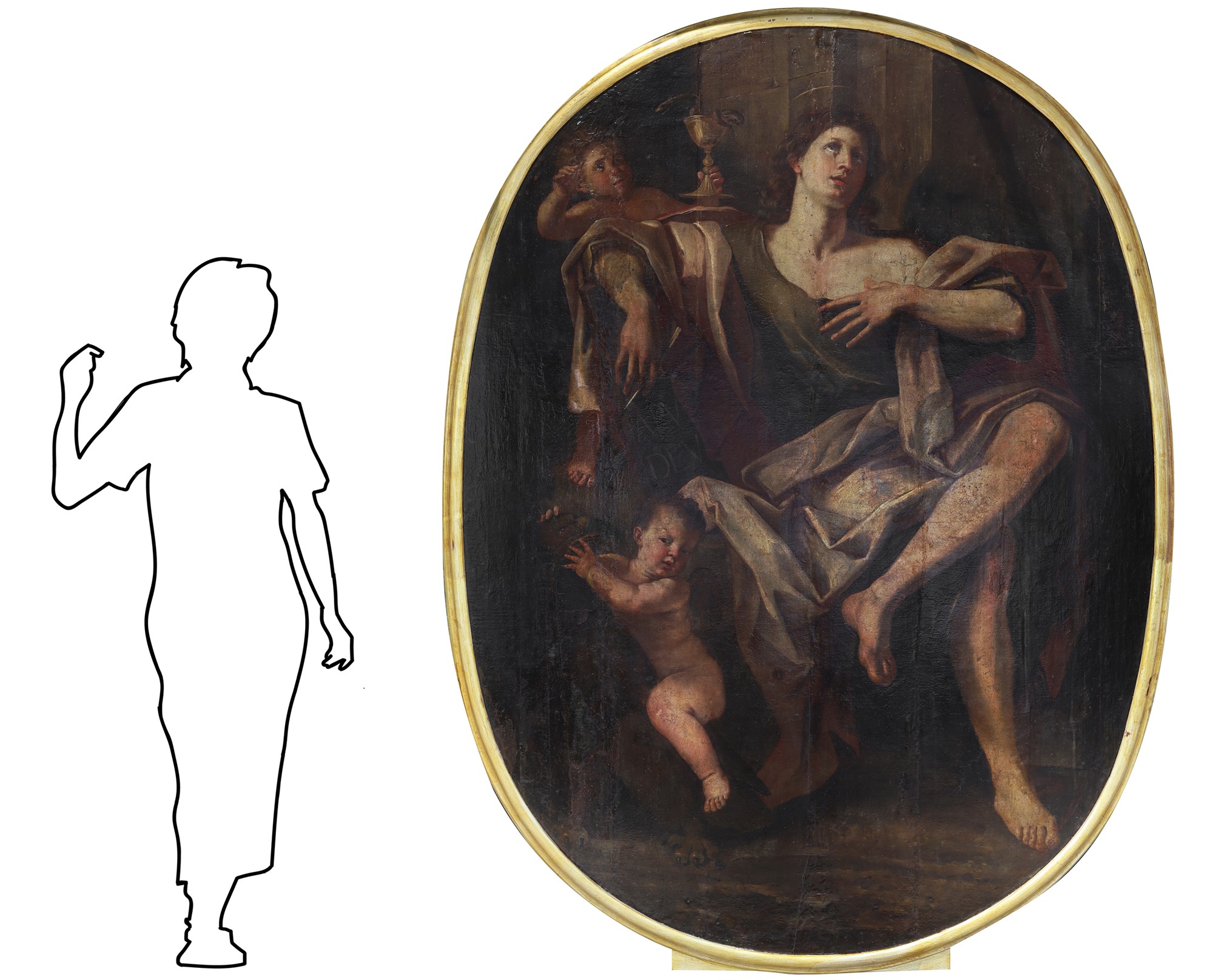 230 x 170 San Giovanni Evangelista con Putti e calice con serpente Dipinto ad olio su tavola di forma ovale.