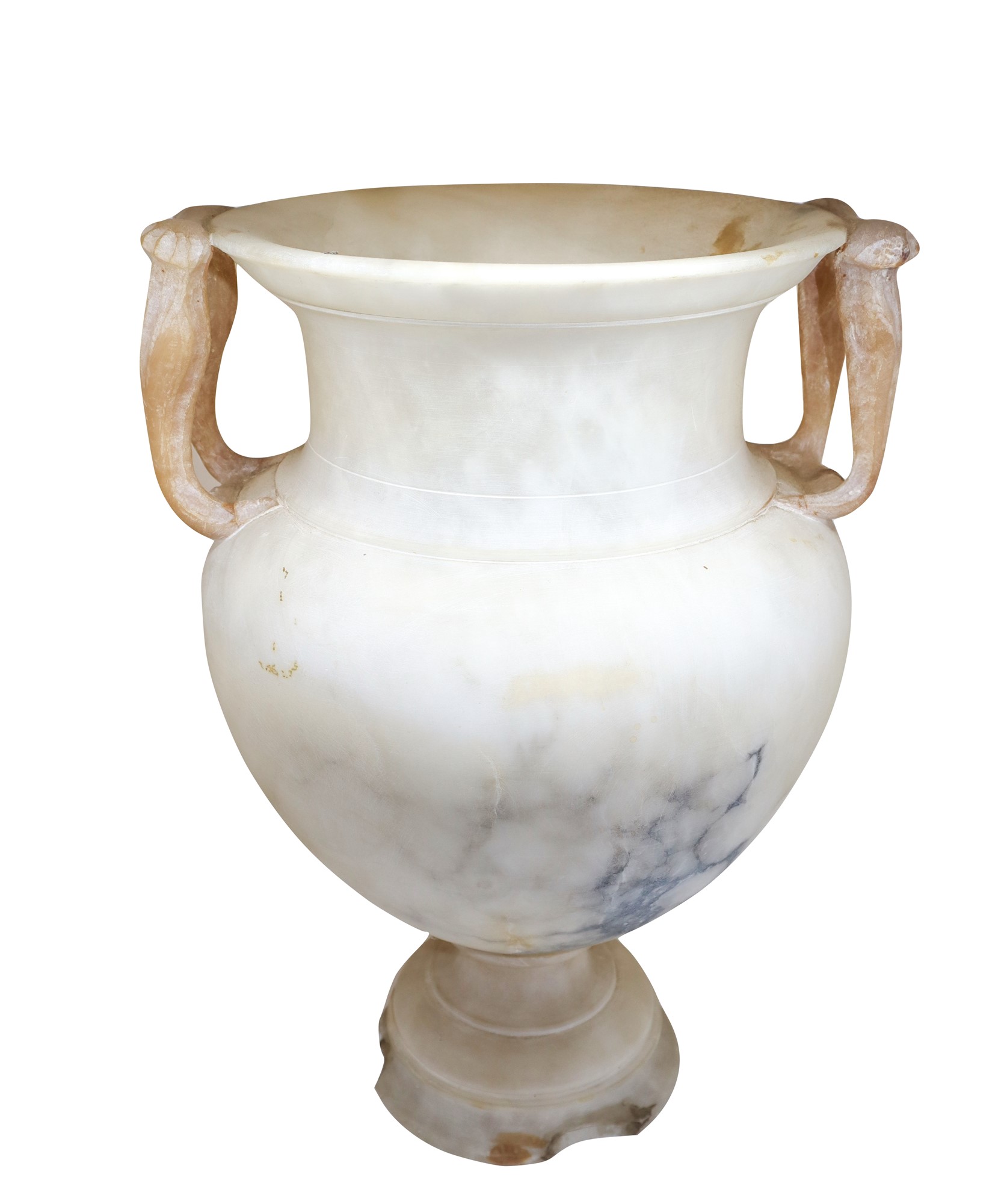 h cm 26, bocca larghezza cm 23 Vaso in alabastro con manici Piccole sbeccature alla base.