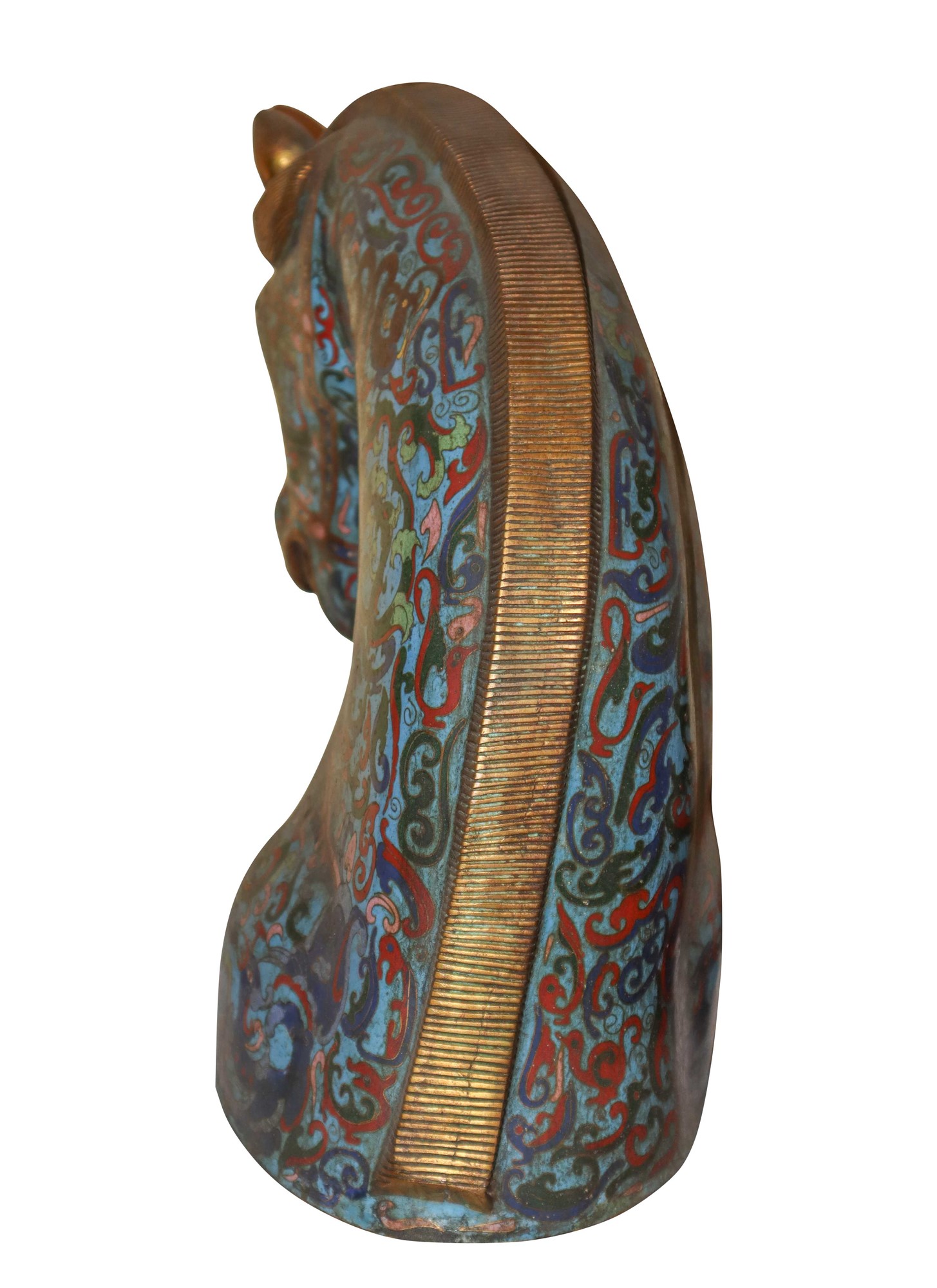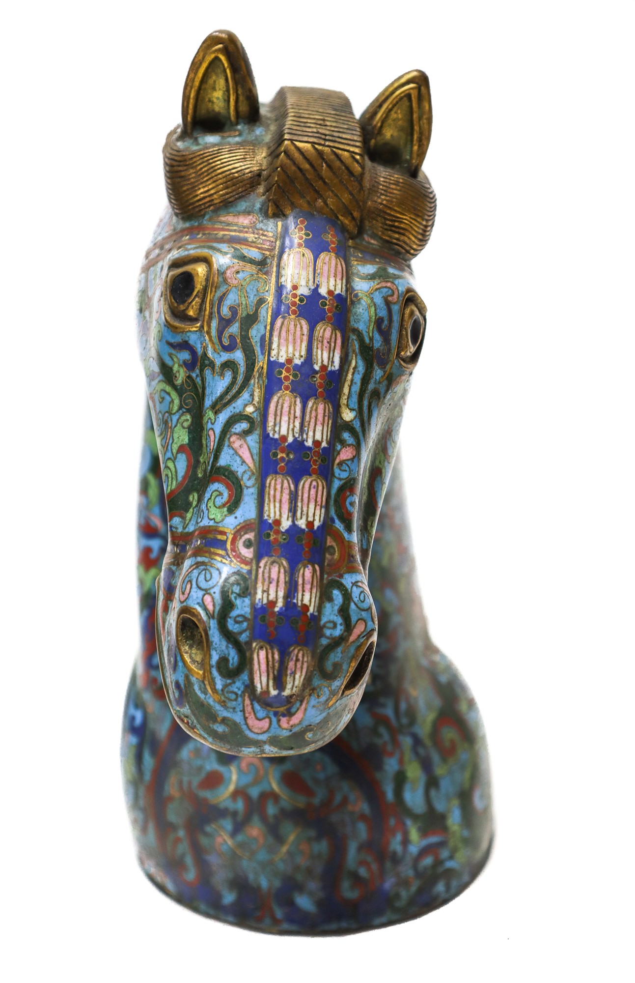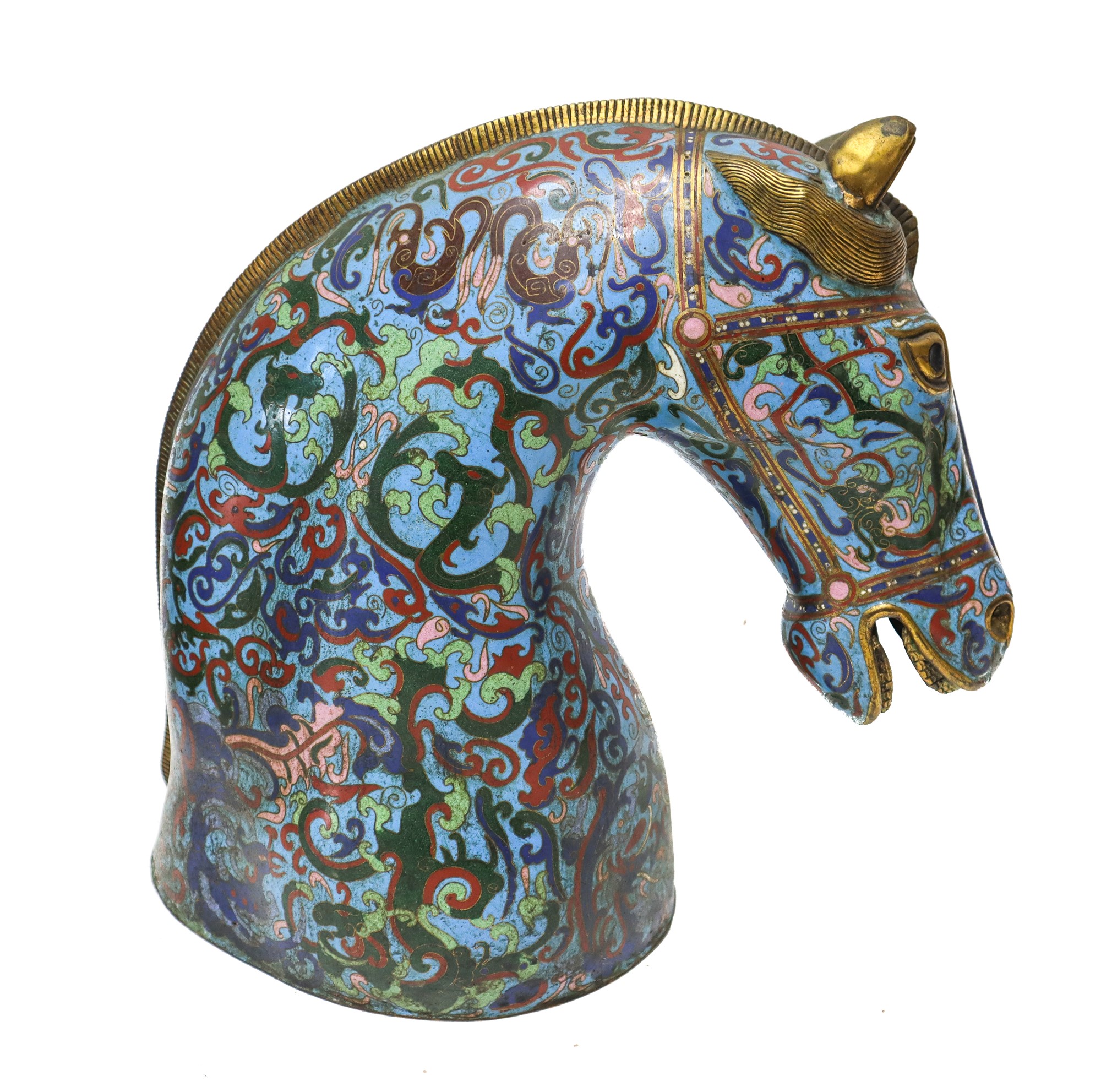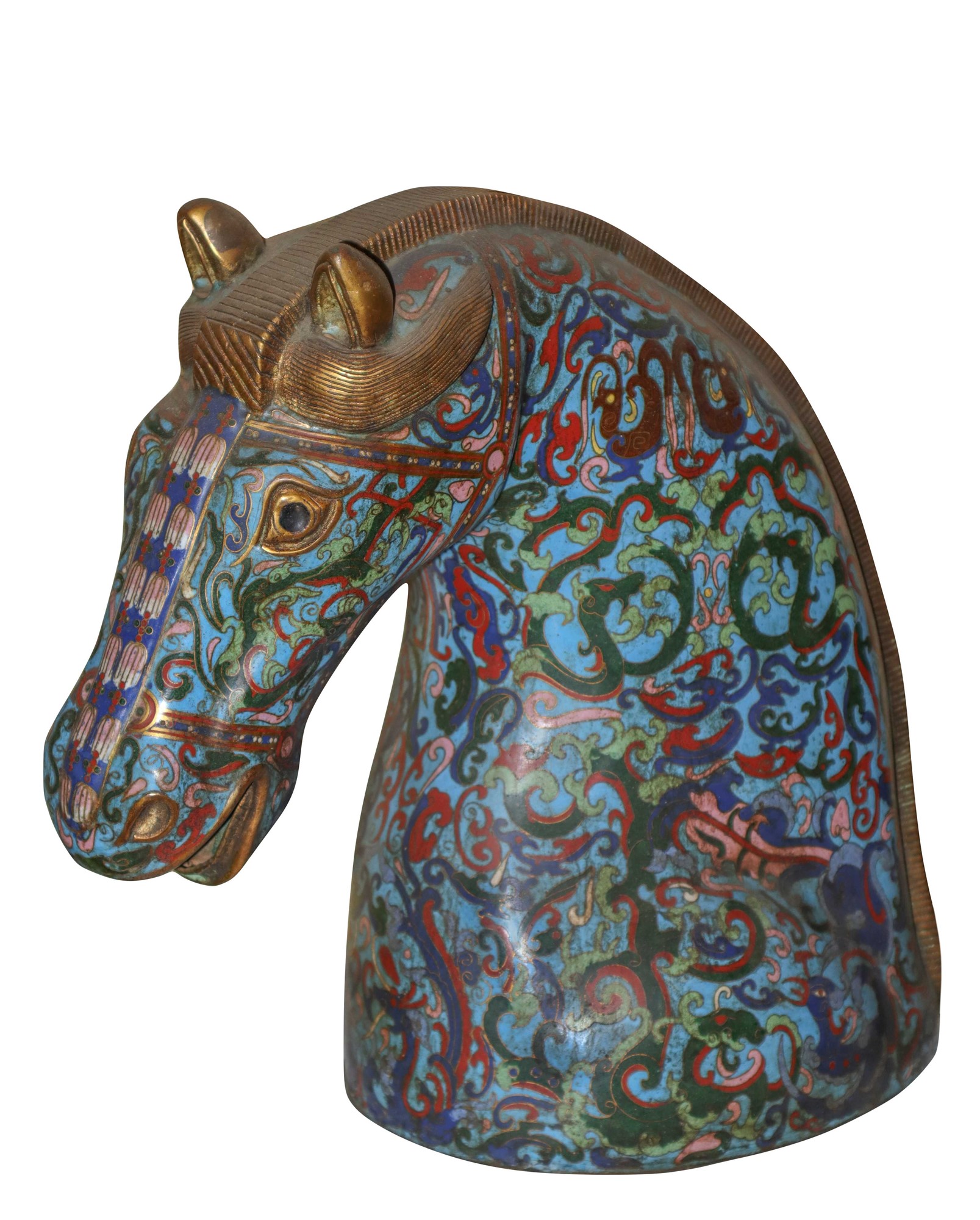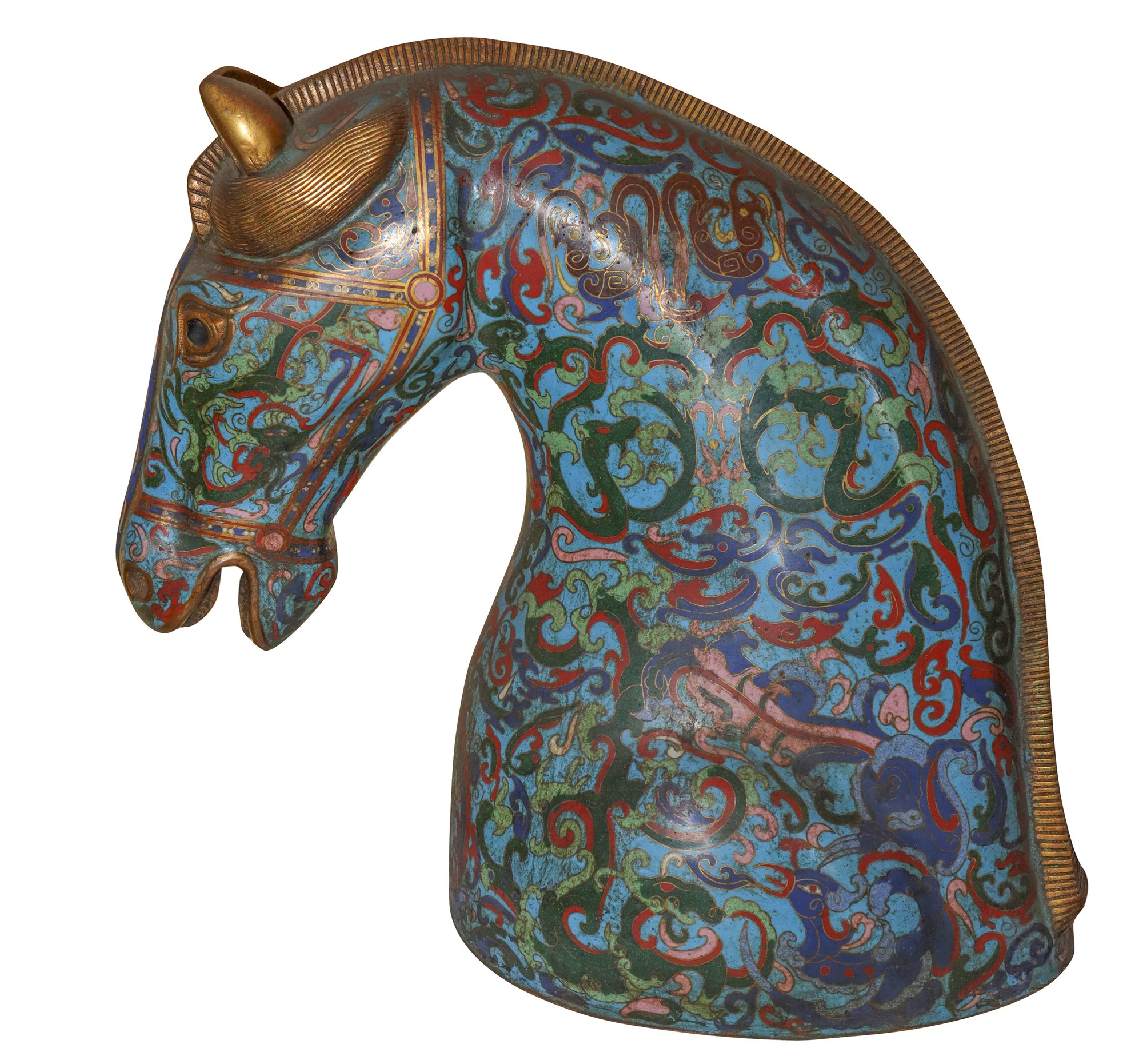 h cm 34 x cm 35 Testa del cavallo fortunato Testa di cavallo fortunato in bronzo smaltato cloisonné. Provenienza Famiglia Paternò Castello di Biscari.