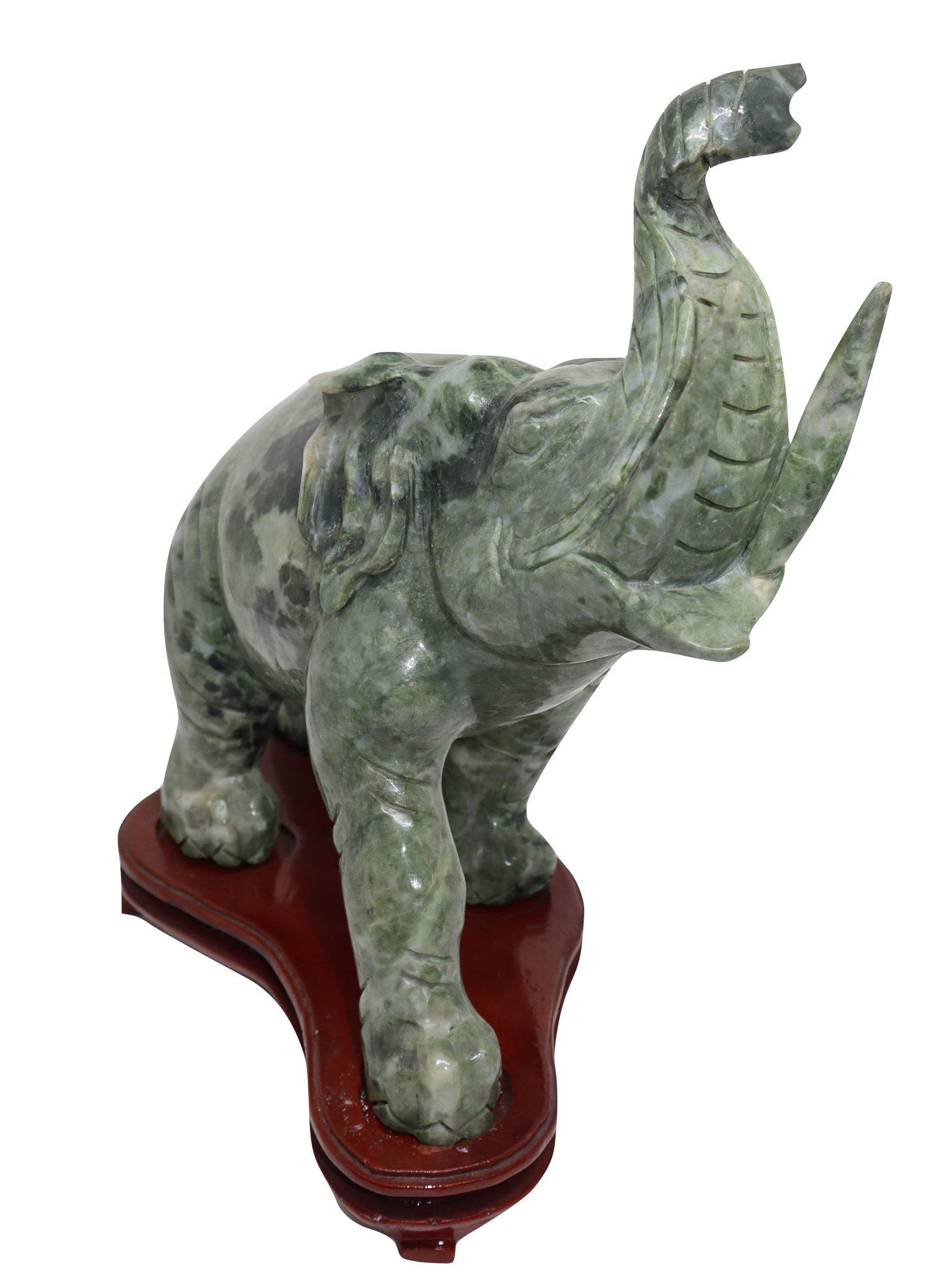 h cm 24 su base in legno Coppia di Elefanti in giada Minima sbeccatura su una zanna.