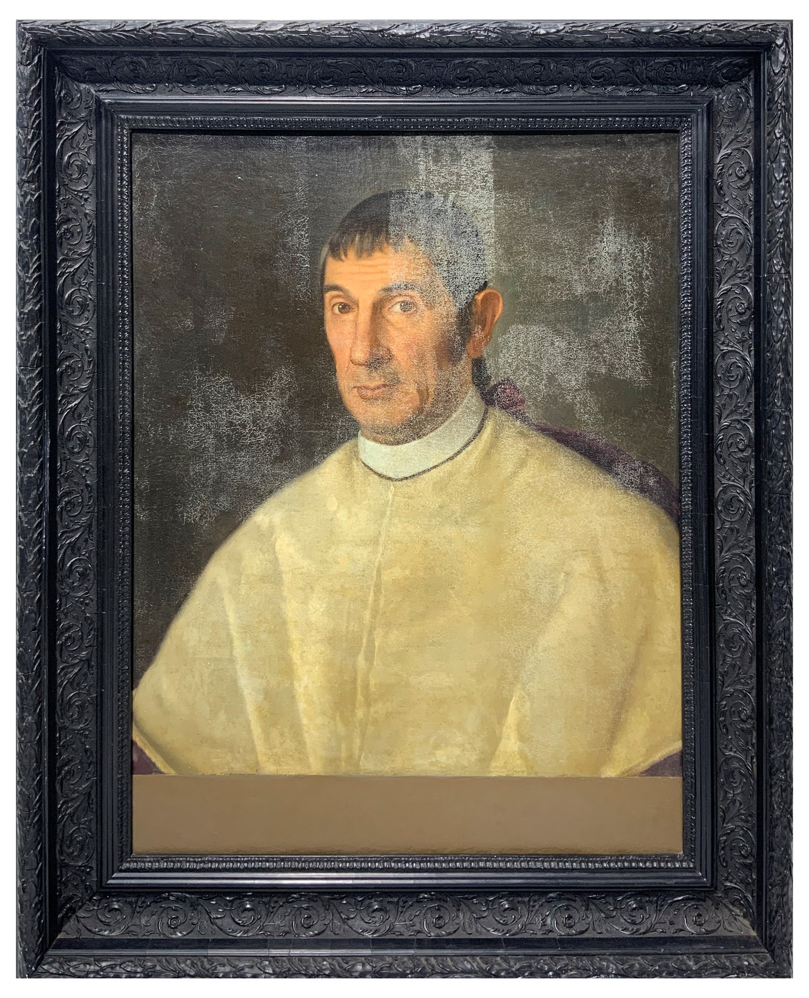Cm 65x51, in cornice cm 85x68 Ritratto di canonico Dipinto ad olio su tela Tracce di ossidazioni da pulire