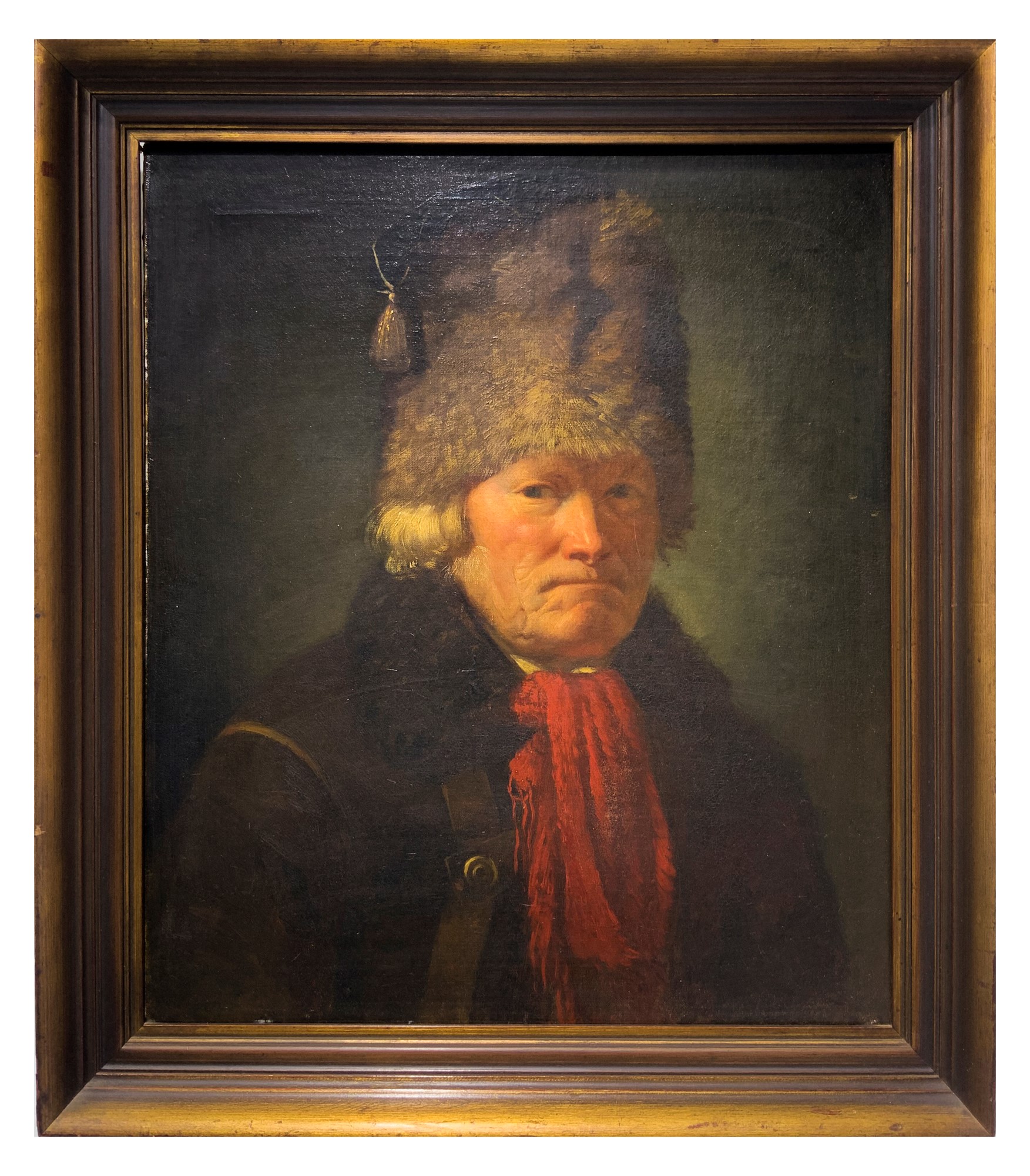 Cm 64x55 Uomo con colbacco Dipinto ad olio su tela