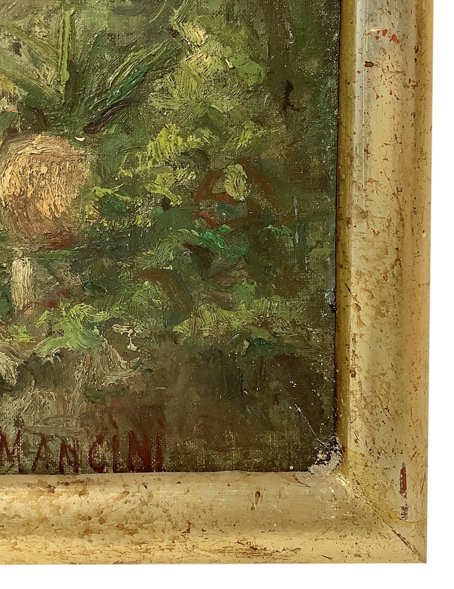 cm. 44,5 x 52,5 in cornice cm. 47 x 55 Dipinto campestre con cespugli ed alberi Olio su tela Firmato in basso a destra F. Mancini