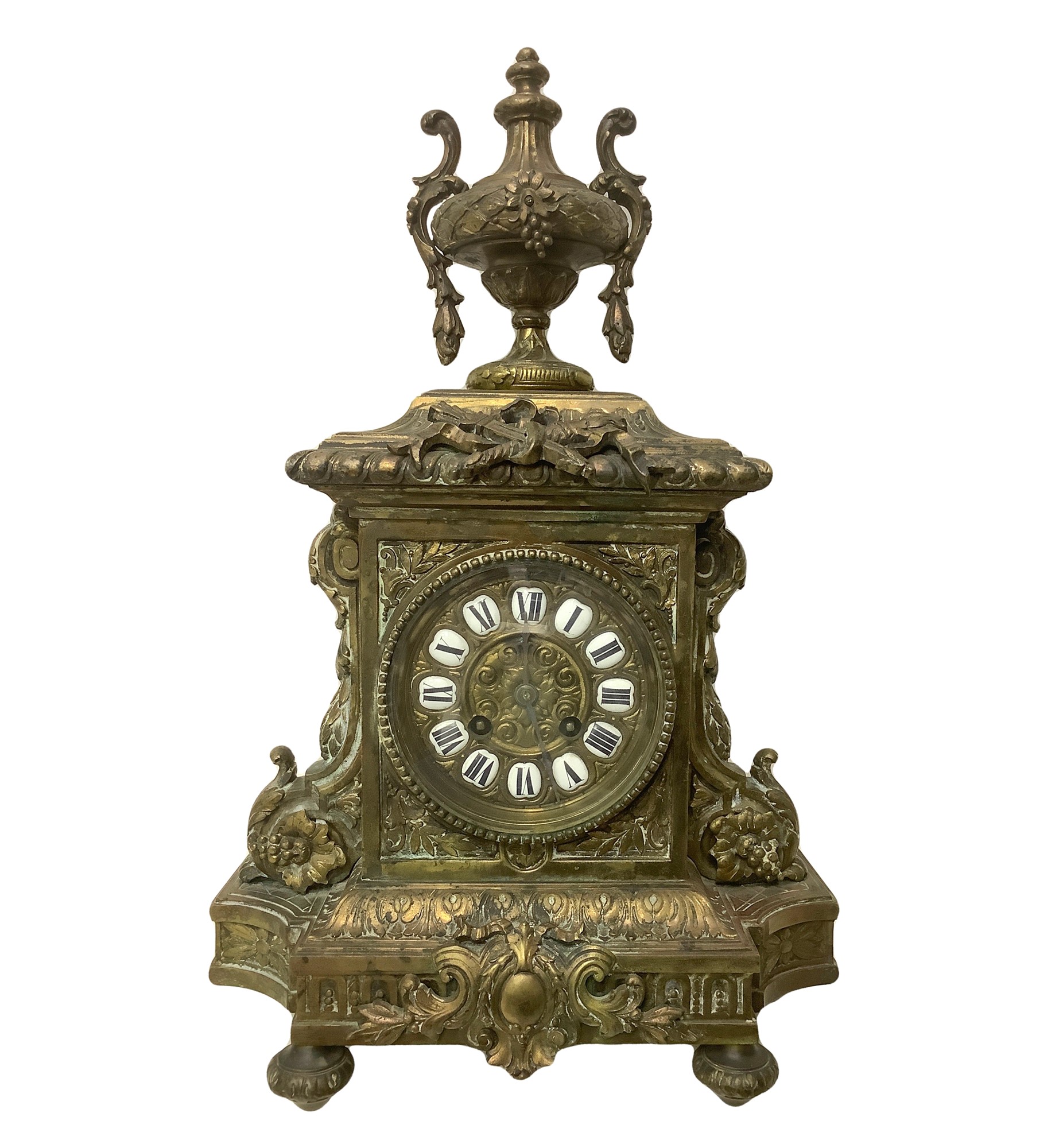 h cm 43x30 Orologio in bronzo Quadrante con numeri romani in porcellana bianca. Da revisionare