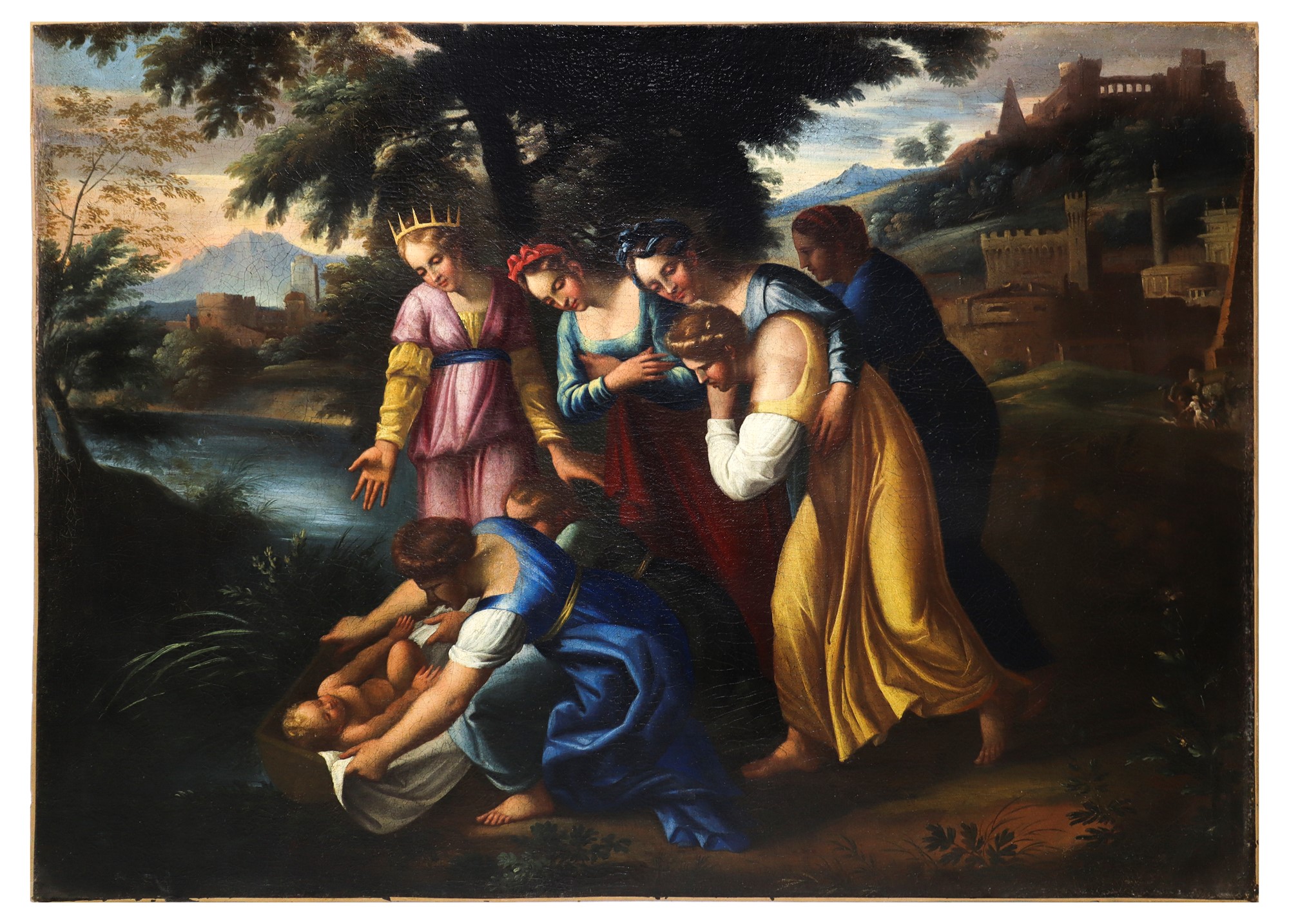 cm 93 x cm 104 Ritrovamento di Mosè Dipinto ad olio su tela Opera sprovvista di cornice.