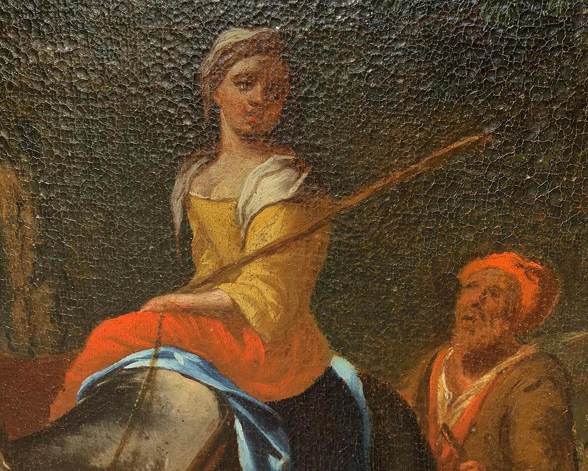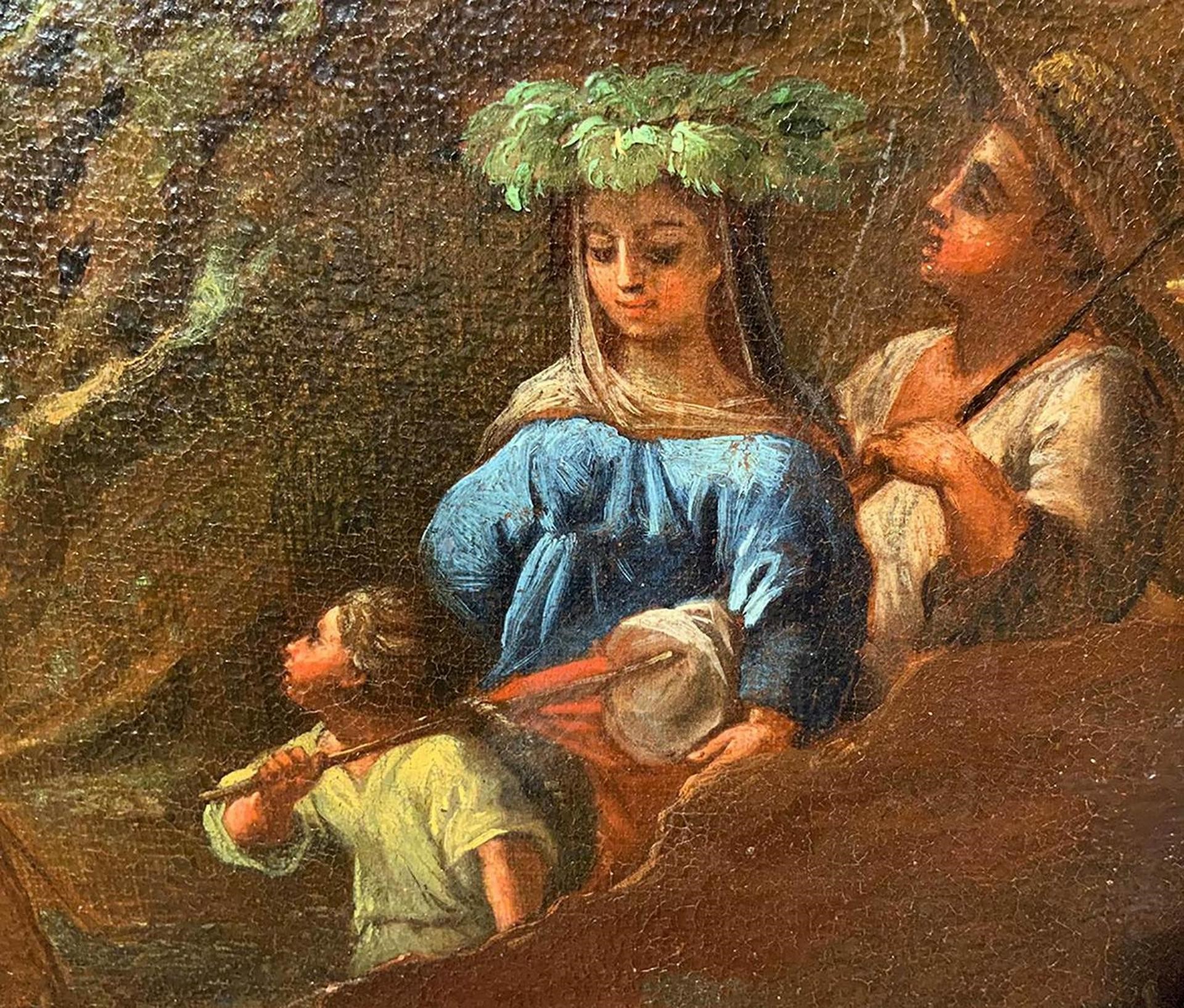cm 59 x cm 85, in cornice cm 77 x cm 103 Scena pastorale con personaggi ed armenti olio su tela Pittore olandese italianizzato, figlio del pittore Pieter Claesz, fu uno stimato pittore ed incisore della così detta età dell'oro olandese. A Roma soggiornò dal 1647 al 1653 traendo, dal paesaggio laziale, i temi e gli spunti per la sua innumerevole produzione. Gli scorci suggestivi della campagna romana furono le scenografie riportate sulle sue tele per raffigurare spaccati di vita quotidiana di sapore agreste e bucolico. STUDIO ASOR