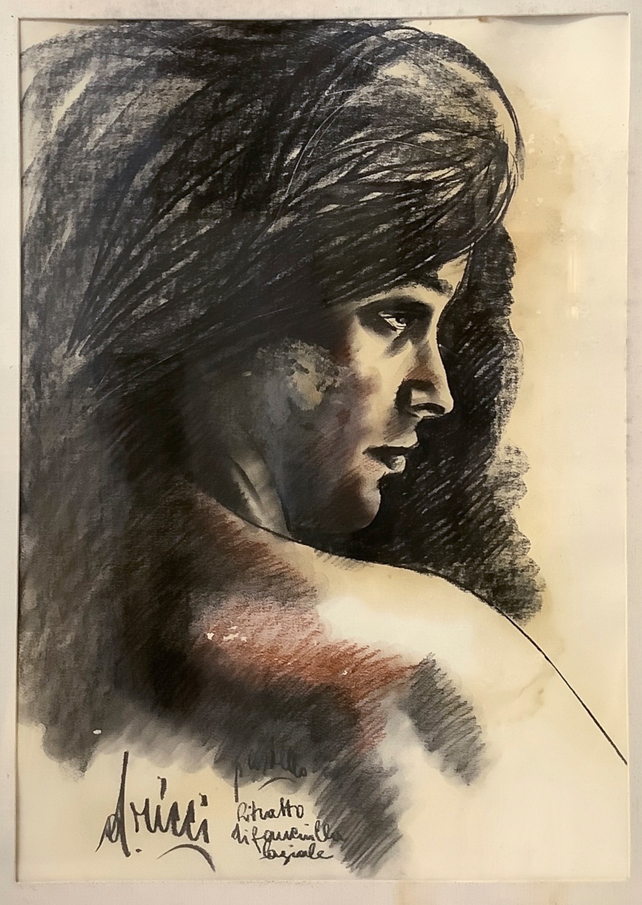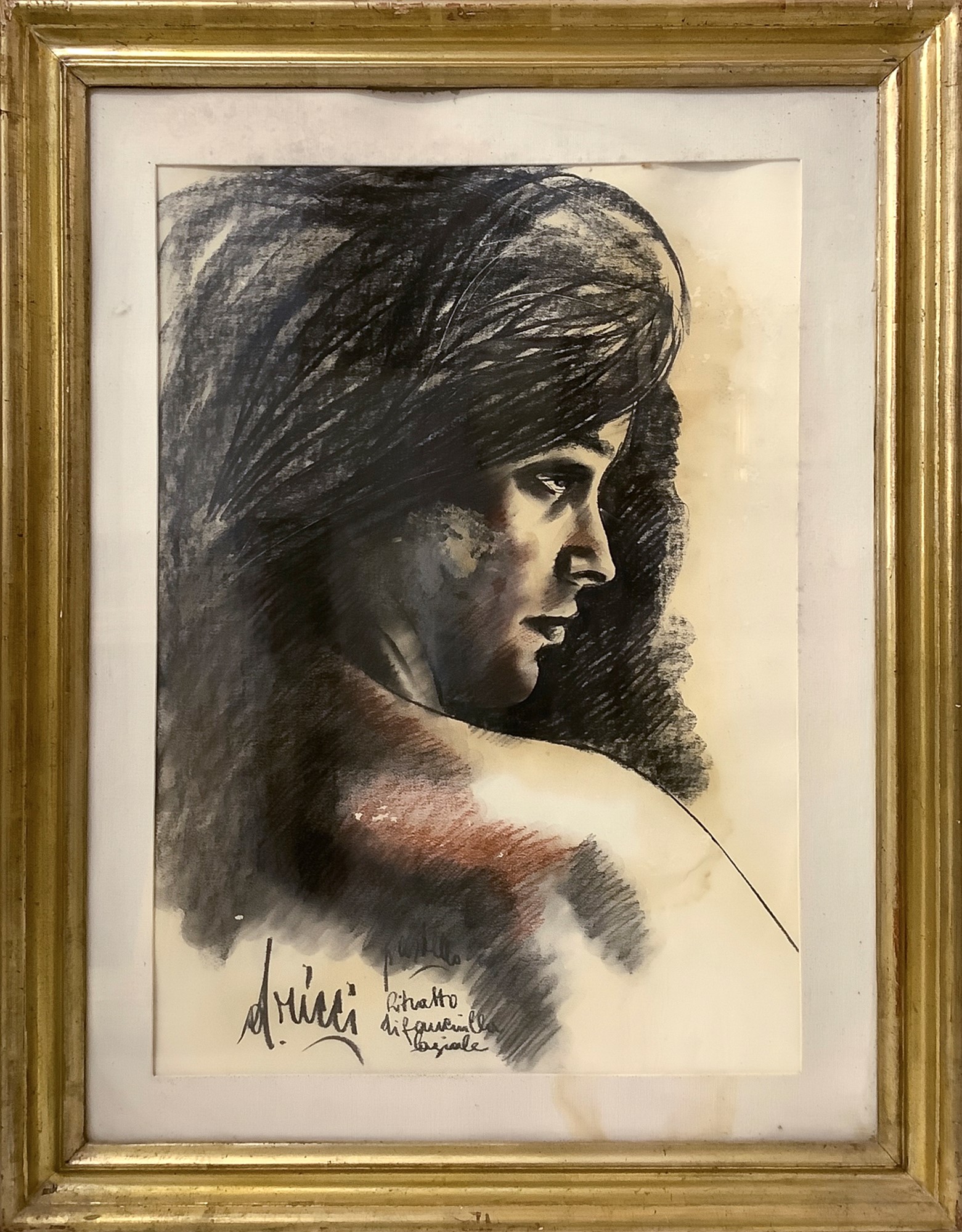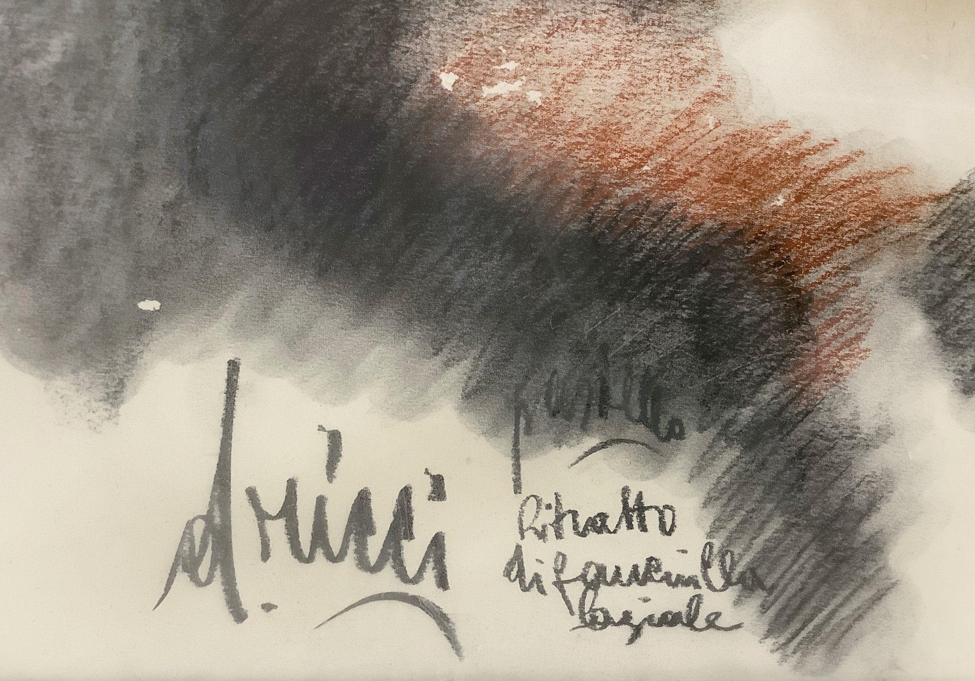 cm 80 x cm 60, in cornice dorata cm 94 x cm 74 Fanciulla laziale Dipinto a pastello su cartoncino Firmato e titolato in basso a sinistra, piccole cadute di colore