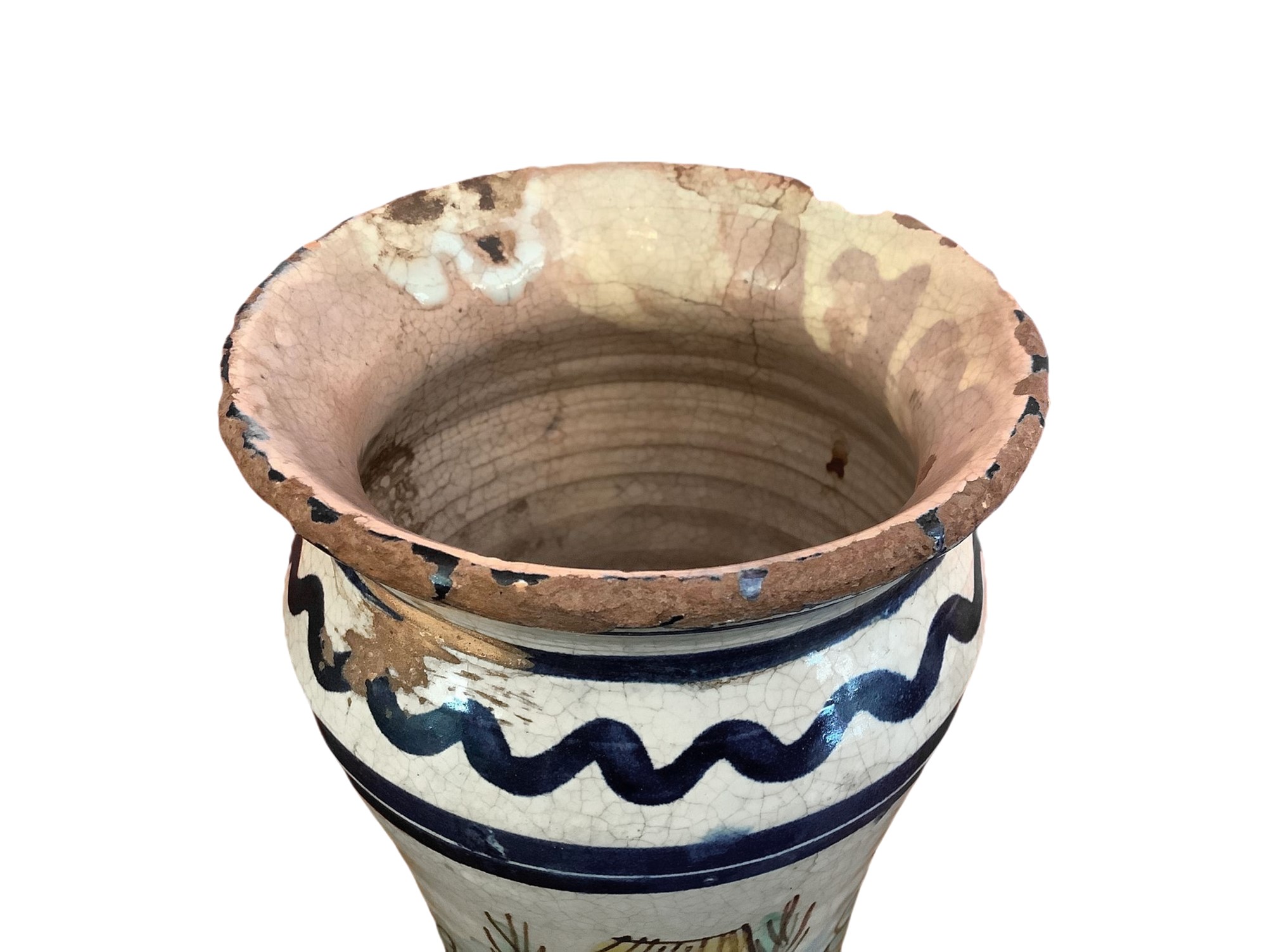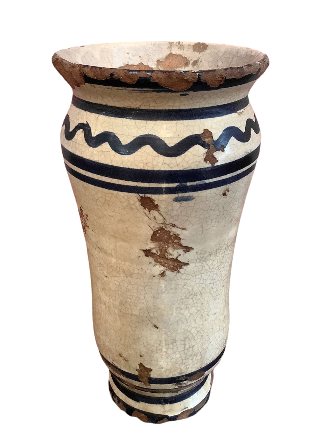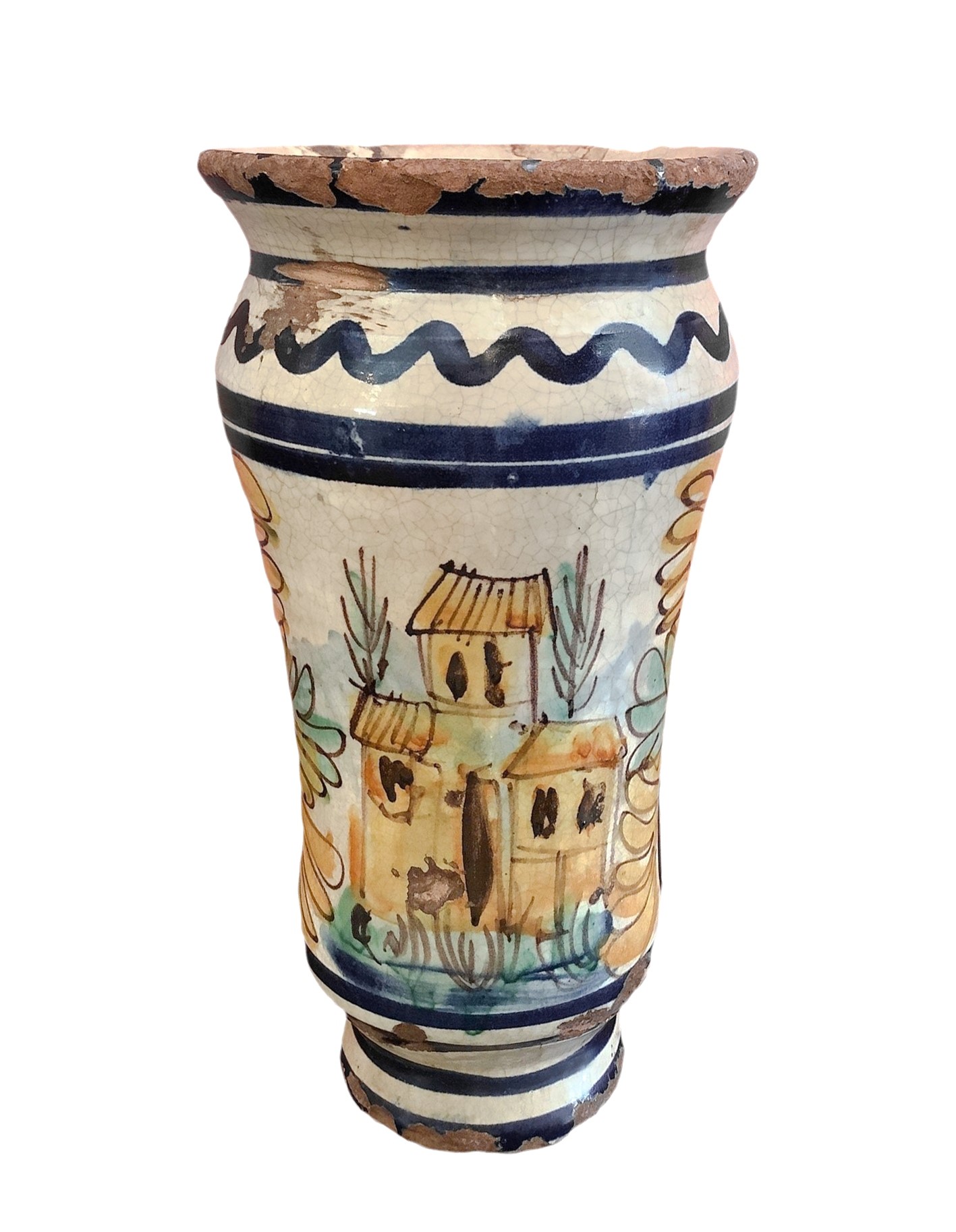 h cm 25 x cm 42 Vaso a sfondo bianco con motivi blu, fiori e case