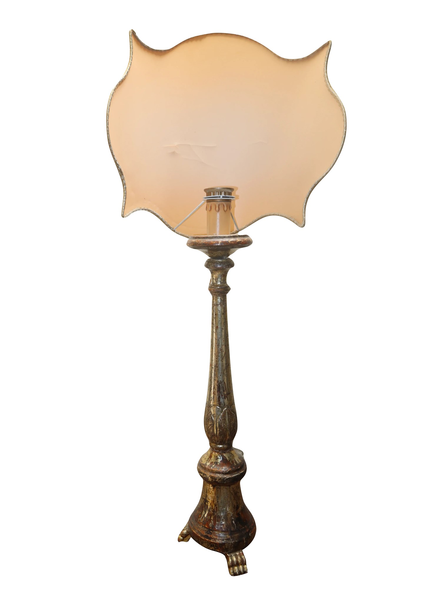 h cm 63; con paralume cm 102 Paralume con candelabro In legno dorato a foglia d'oro laccata