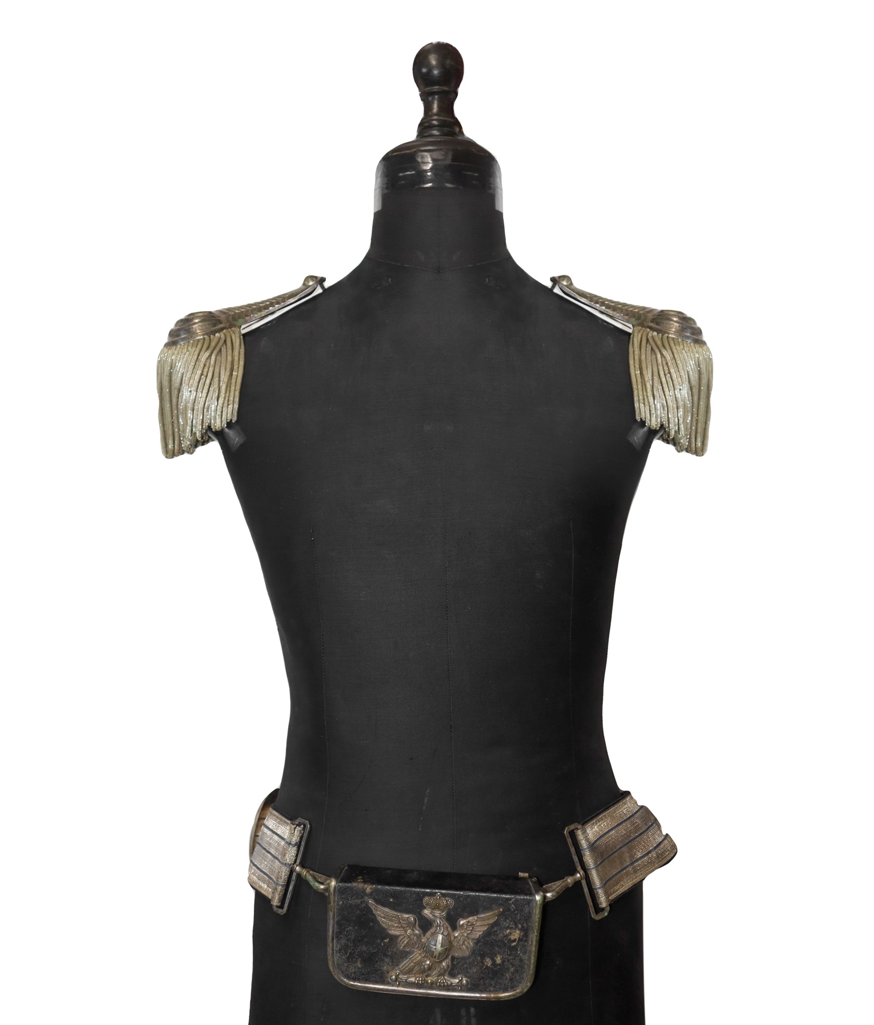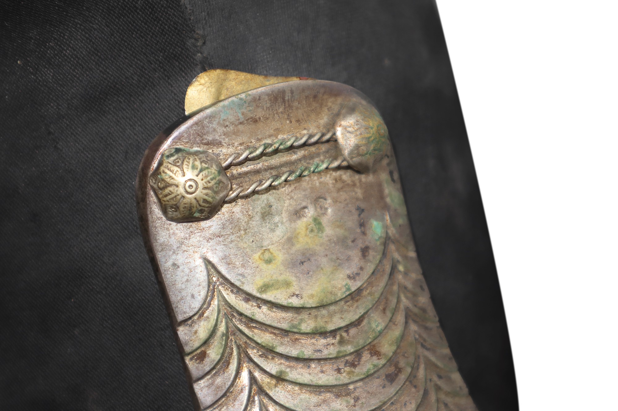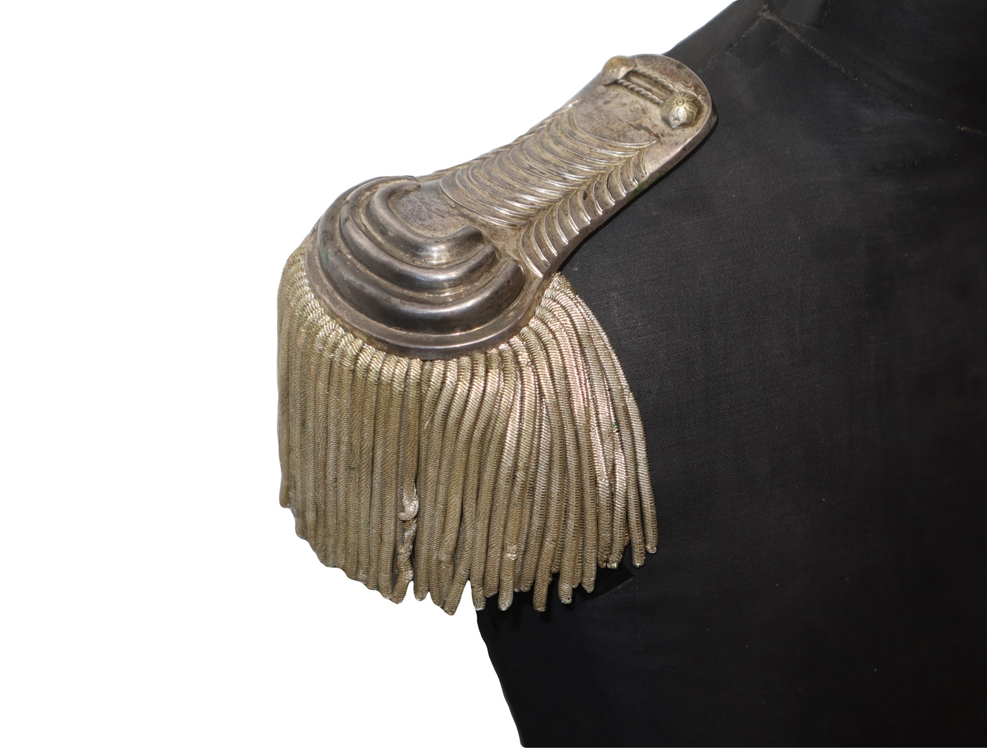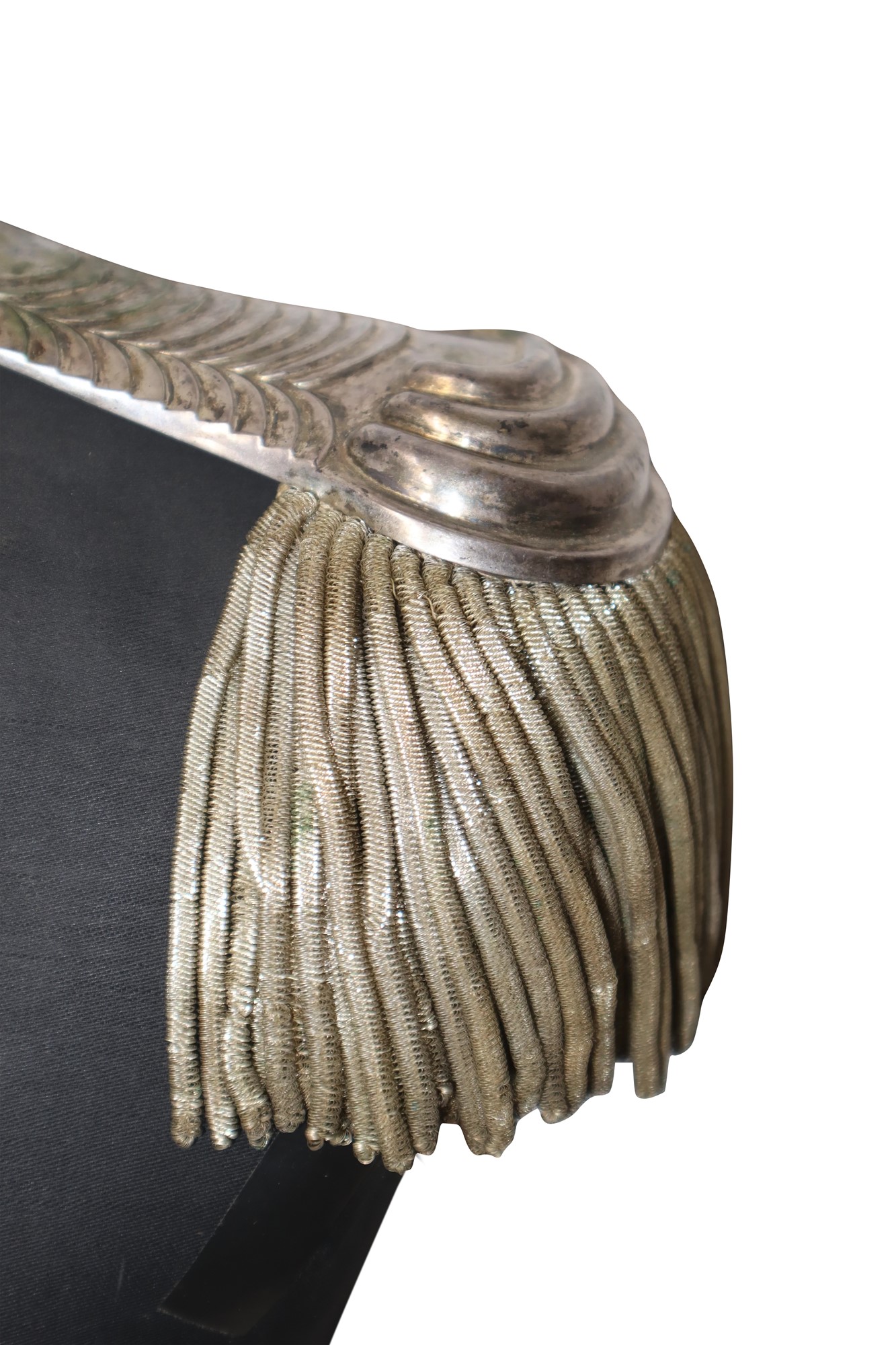 Coppia di spalline argentate con giberna da ufficiale Presente leggera scucitura su una frangia