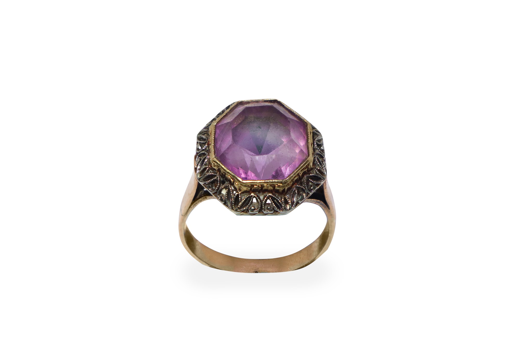 Gr 5.9 Anello in oro bianco 18 kt e pietra ametista rettangolare