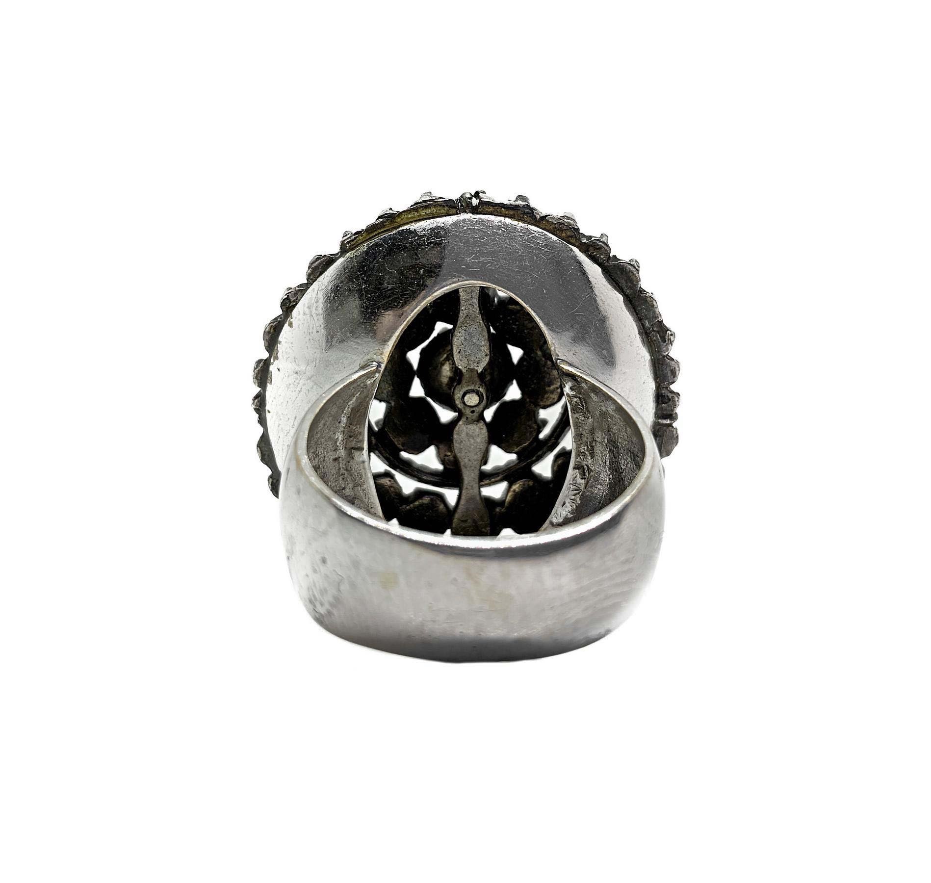 Gr 16.5 Splendido e grande anello a cuspide in argento e brillanti Lavorazione in stile antico.