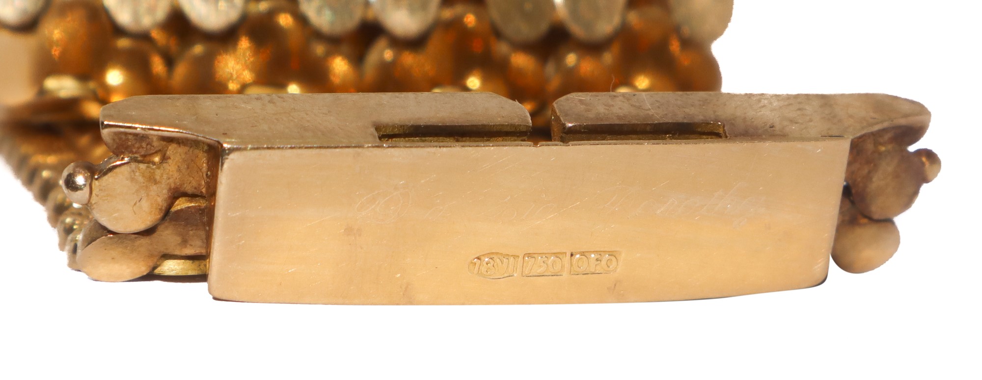grammi 71.5, larghezza cm 4,40 x lunghezza cm 19 Importante bracciale a fascia Satinato e lucido, in oro rosso