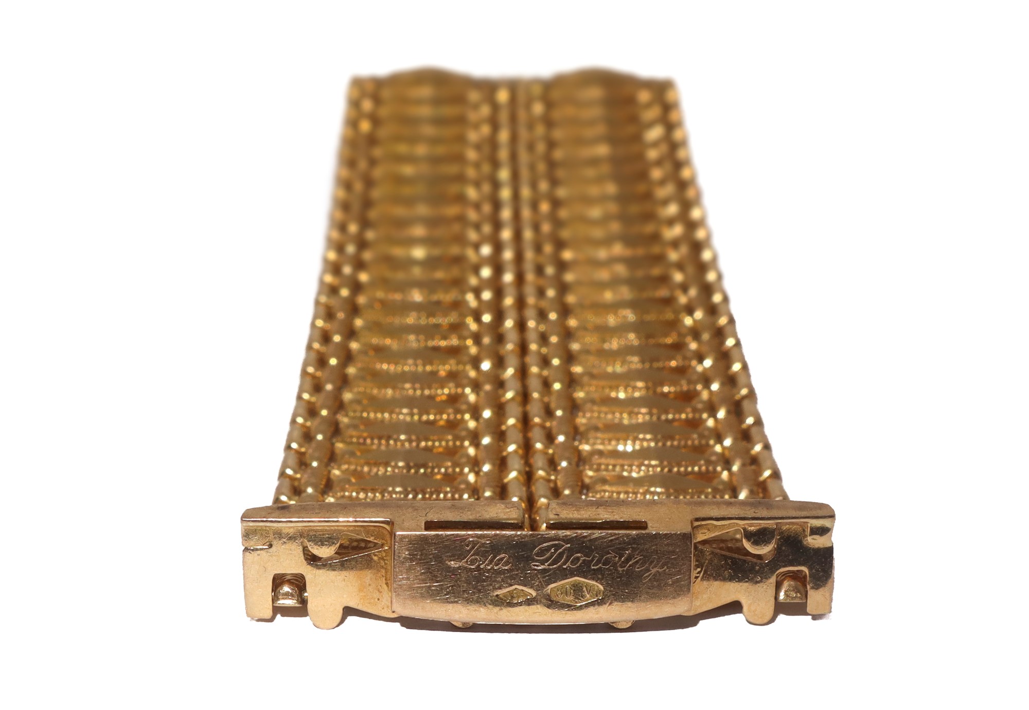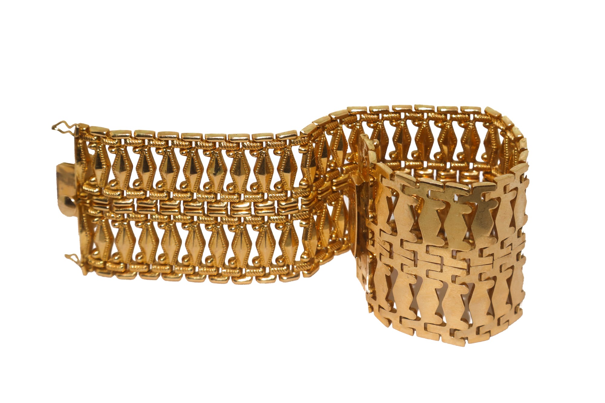 Lot 338 | grammi 66.5; larghezza cm 4,10 e lunghezza cm 19 Importante bracciale a fascia Lavorazione a mag