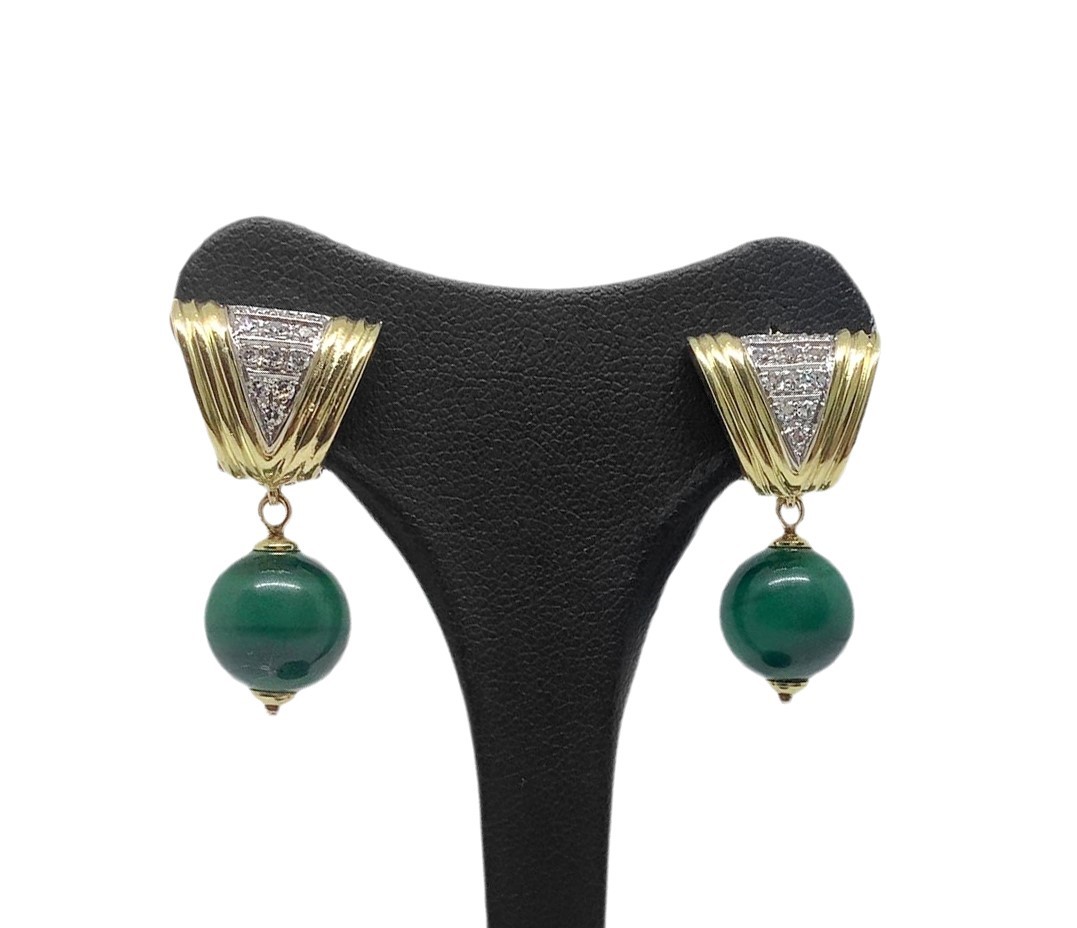 Orecchini in oro bianco e giallo Pendenti in malachite e brillantini