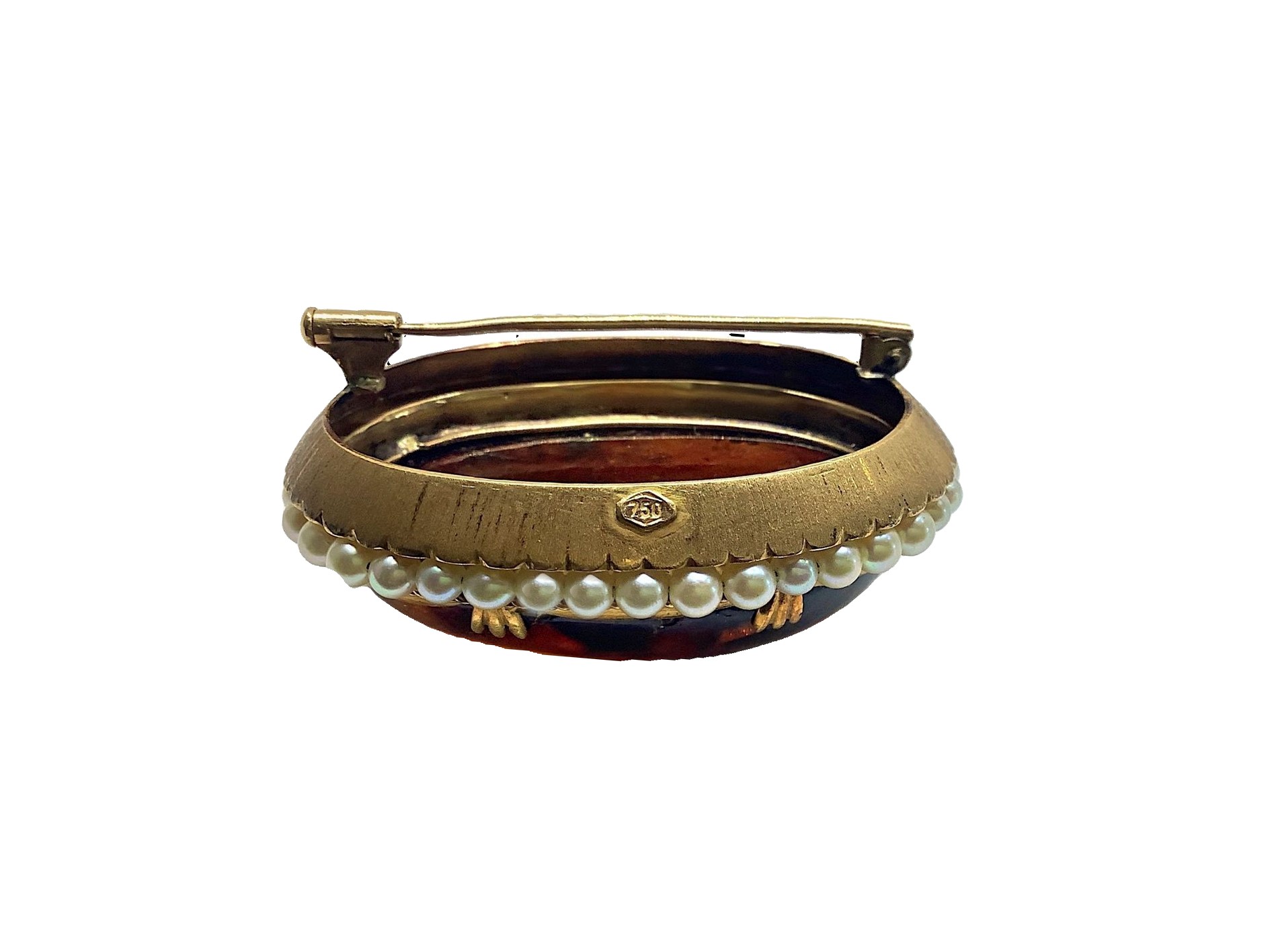 h cm 4,7x 3,3 Spilla con ovale in ambra e contornata da perline 20,3 gr