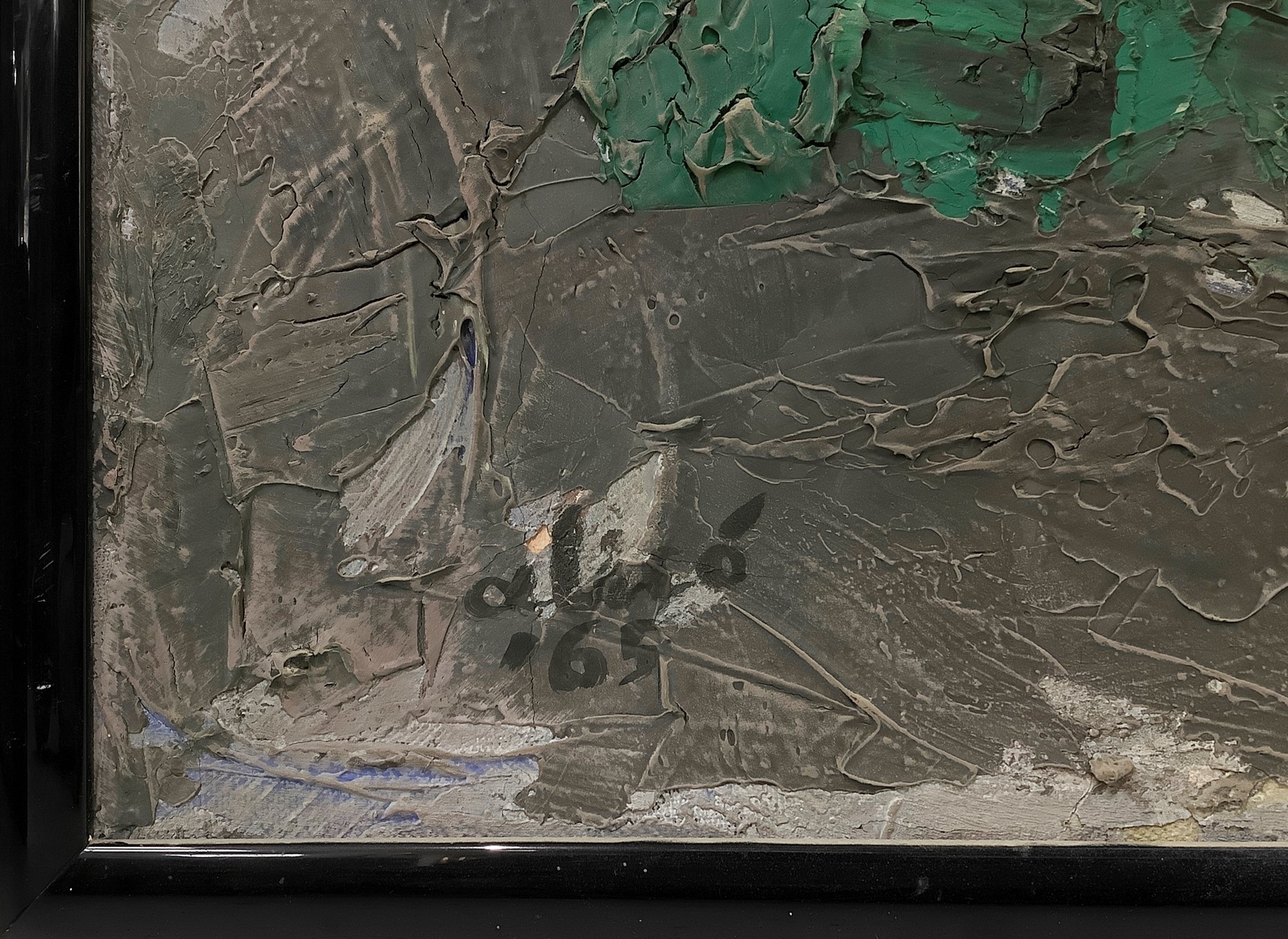 70x90 cm Parete n.2 Idropittura su tela Giovanni Alicò nasce a Catania nel 1906. Pittore autodidatta, il suo approccio all'arte è libero da vincoli o binari precostruiti. Nel 1935 si stabilisce prima a Napoli poi a Milano. Nel 1942 è presente con un'opera alla XXIII Biennale di Venezia,e nello stesso anno, tiene la sua prima mostra personale alla Galleria Tornabuoni di Firenze. Seguono, tra il 1948 e il 1953, sei anni di attività in Argentina,con tre personali a Buenos Aires e molte partecipazioni a collettive in diversi saloni nazionali nelle città di La Rioja, Santa Fè, Mendoza e Rosario. Rientrato in Italia, dalla metà degli anni Cinquanta e per tutto il decennio successivo diverse furono le sue personali a Catania, Milano, Roma e Como. E' stato Premio Suzzara nel 1955 con l'opera Contadino che riposa, dove il pittore, svincolato da una fredda descrizione realistica e lontano dagli schemi neocubismo tipici del primo dopoguerra, si abbandona ad una pittura di suggestione luministica, dalle larghe campiture di verdi, di grigi, di terre, sostenuta da una densa materia pittorica definita da una spessa linea di contorno. Il dipinto è attualmente conservato nella Galleria Civica d'Arte Contemporanea di Suzzara. Nel 1957 ha esposto alla Galleria il Pincio a Piazza del Popolo a Roma, una delle realtà più attive nel panorama delle mostre d'arte, dove vi esponevano anche Renato Guttuso e Carla Accardi. Ha iniziato il suo percorso artistico raffigurando nella sua pittura i carretti con le colorite storie dei pupi utilizzando tinte preferibilmente piatte, successivamente introduce nella sua tavolozza cromie delicate,vibranti,e si concentra su temi pervasi da una marcata spiritualità. I soggetti favoriti sono figure femminili, nature morte e paesaggi. Negli Anni Cinquanta Giovanni Alicò avvicina il suo stile a quello di Guttuso, nell'ambito del realismo sociale. La sua attenzione è verso una pittura figurativa sintetica,che procede per suggestioni nella generale aderenza ai temi del realismo sociale. Dopo il 1960 entra nella sua opera un’importante poetica fatta di arabeschi e effetti luminosi e cromatici mobilie sfumati. Dal 1967 compaiono su tali sfondi personaggi antropomorfi, sorta di fantasmi,che si librano nello spazio della composizione. La produzione ultima dell'artista è invece caratterizzata da dipinti dove segni, forme geometriche ripetute e ampie macchie di colore sono resi con cromie intense e vivide approdando a esiti di natura informale e materica. Giovanni Alicò muore a Catania nel 1971. Dopo la sua morte, viene allestita una importante retrospettiva al Palazzo della Borsa di Catania nel 1973. Molte delle sue opere sono presenti in importanti collezioni private in Europa e in America e in diverse fondazioni d'arte.