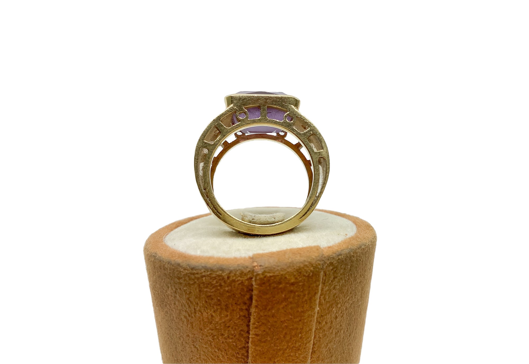 misura 11 Anello in oro rosso con ametista e scagliette di brillanti 10,8 gr.