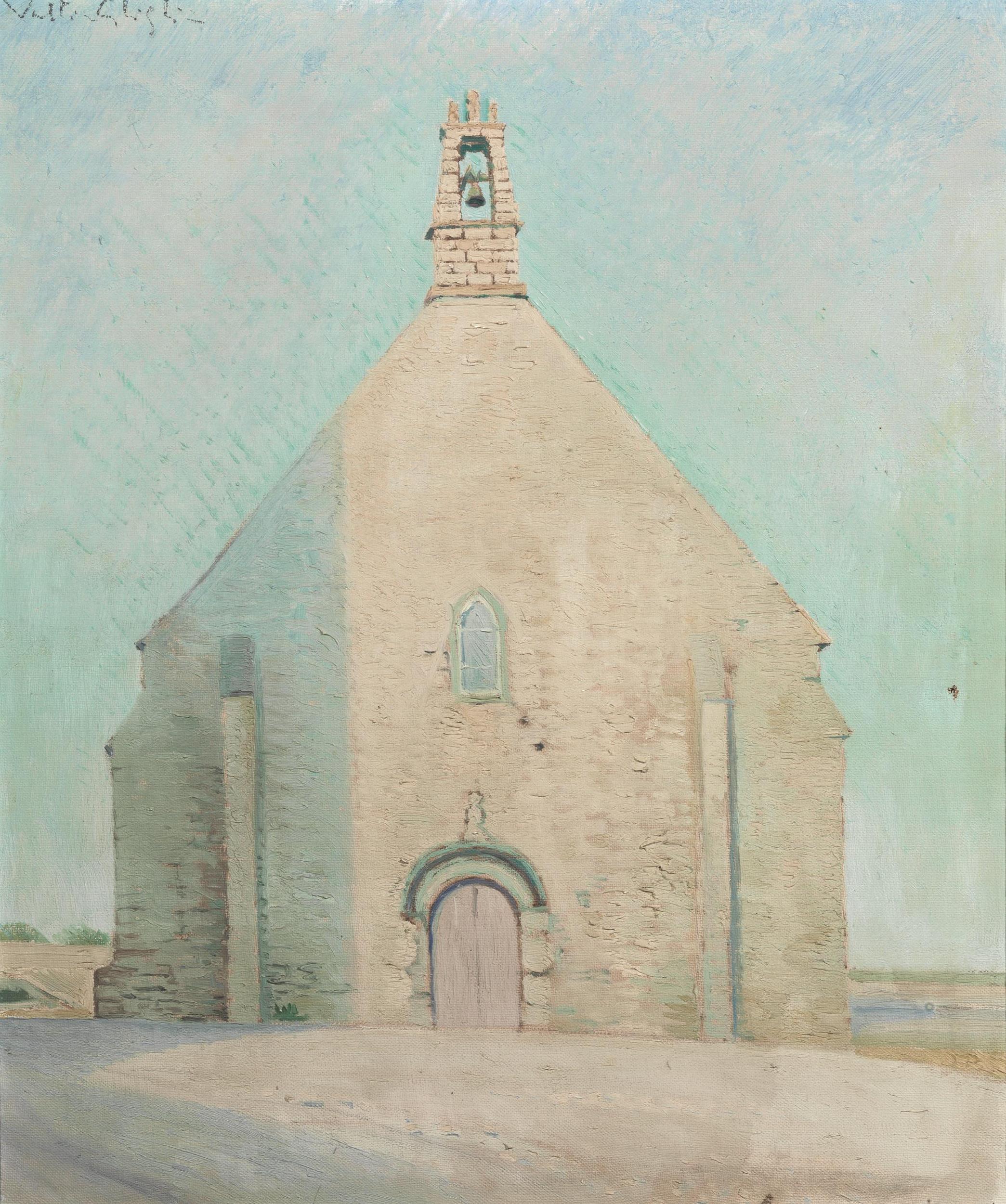 Valentino Ghiglia(Firenze 1903 - 1960)CHIESA A SAINT MATYE, BRETAGNEolio su...