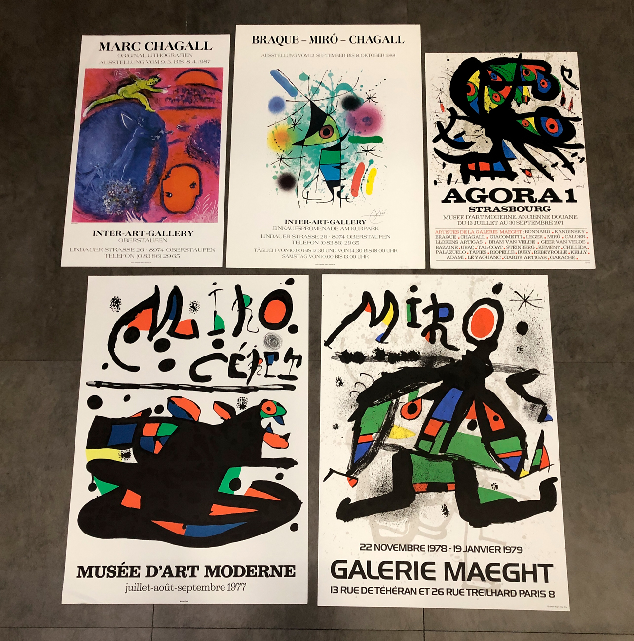 JOAN MIRÒ E MARC CHAGALL - Lotto unico di 5 manifesti