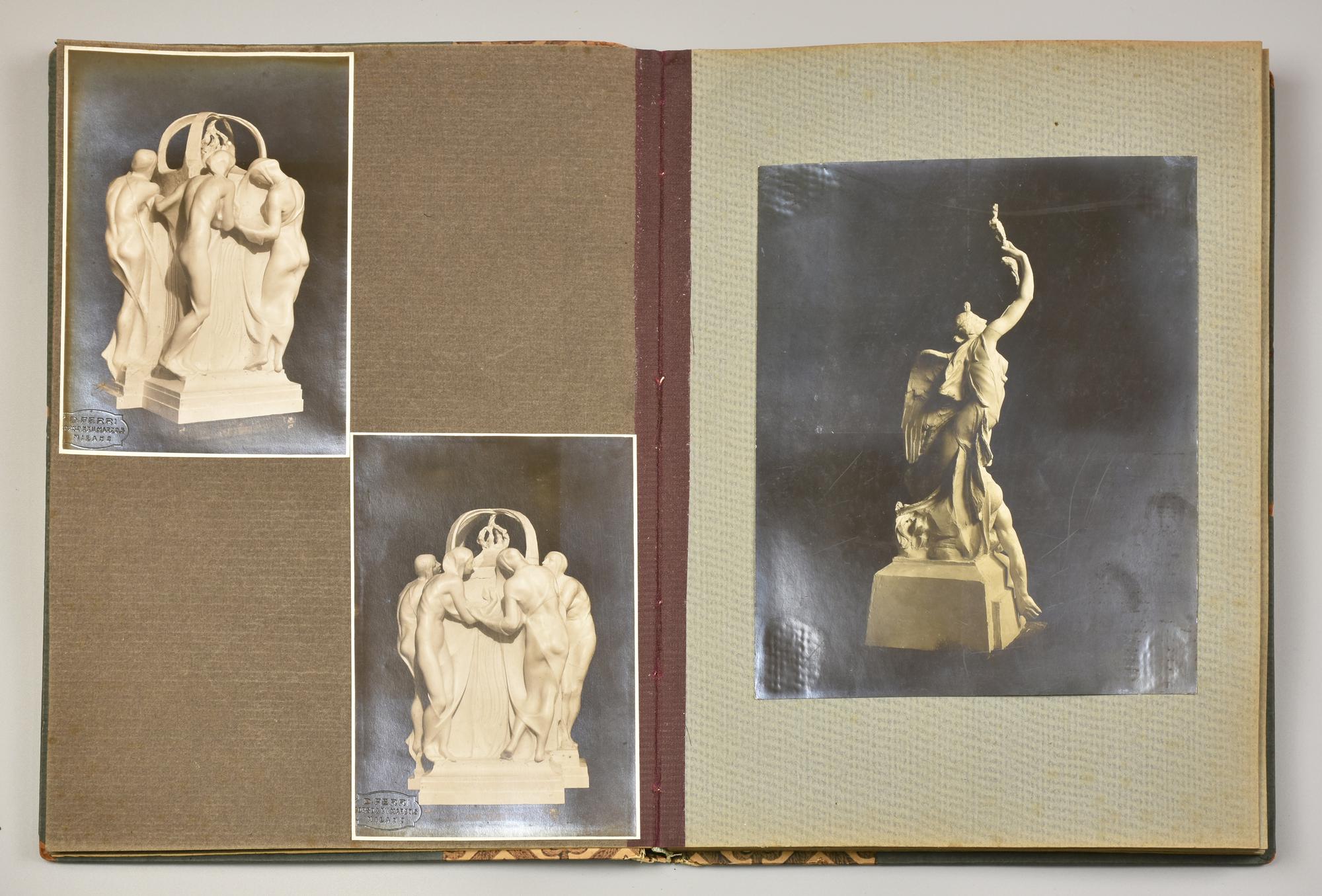 contenente 39 fotografie delle sculture di Cesare Ravasco con due dediche. Alcune fotografie con timbro a secco dei fotografi Emilio Sommariva, Gino Ferri, Achille Ferrario. Foto del periodo 1903-1930