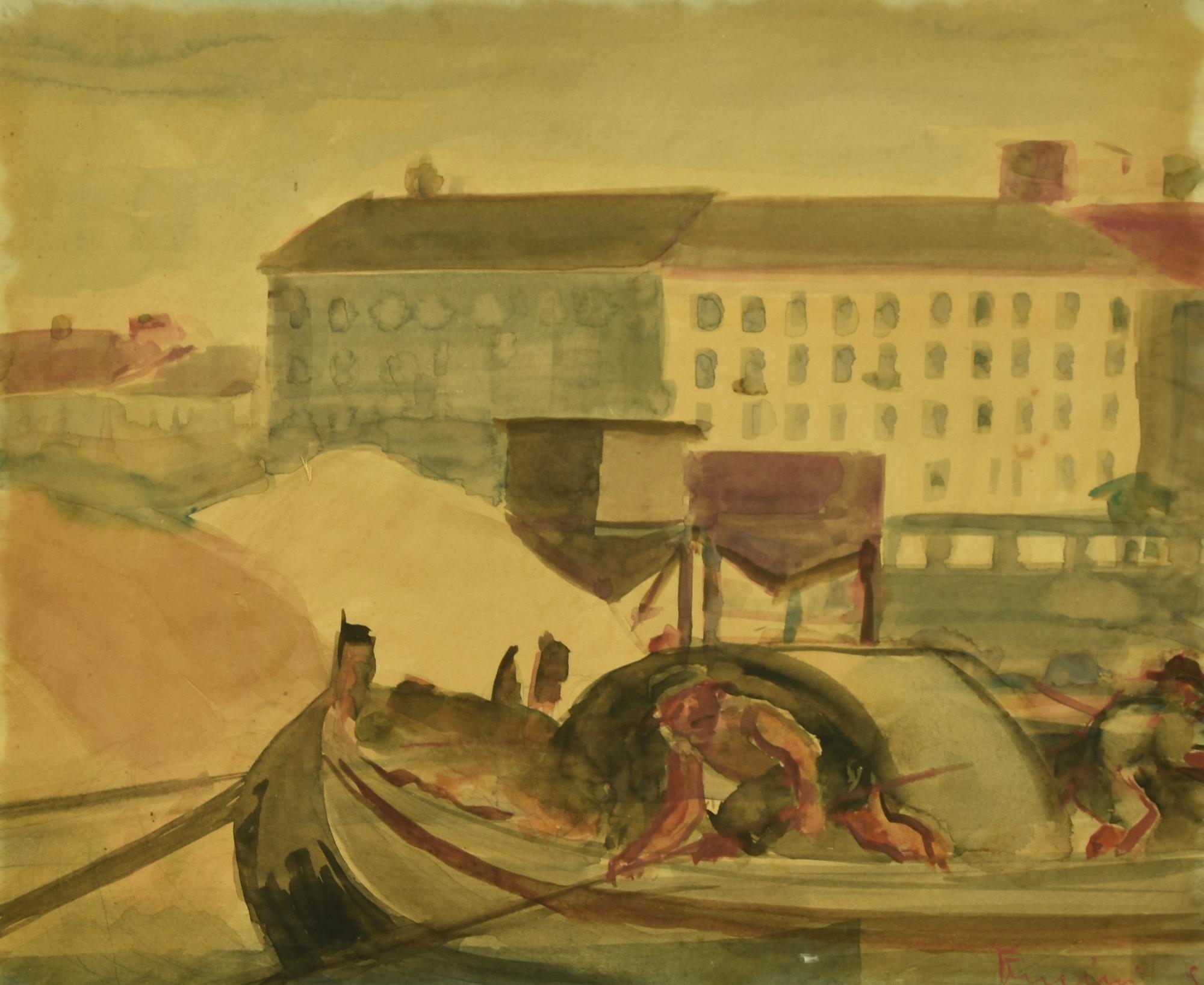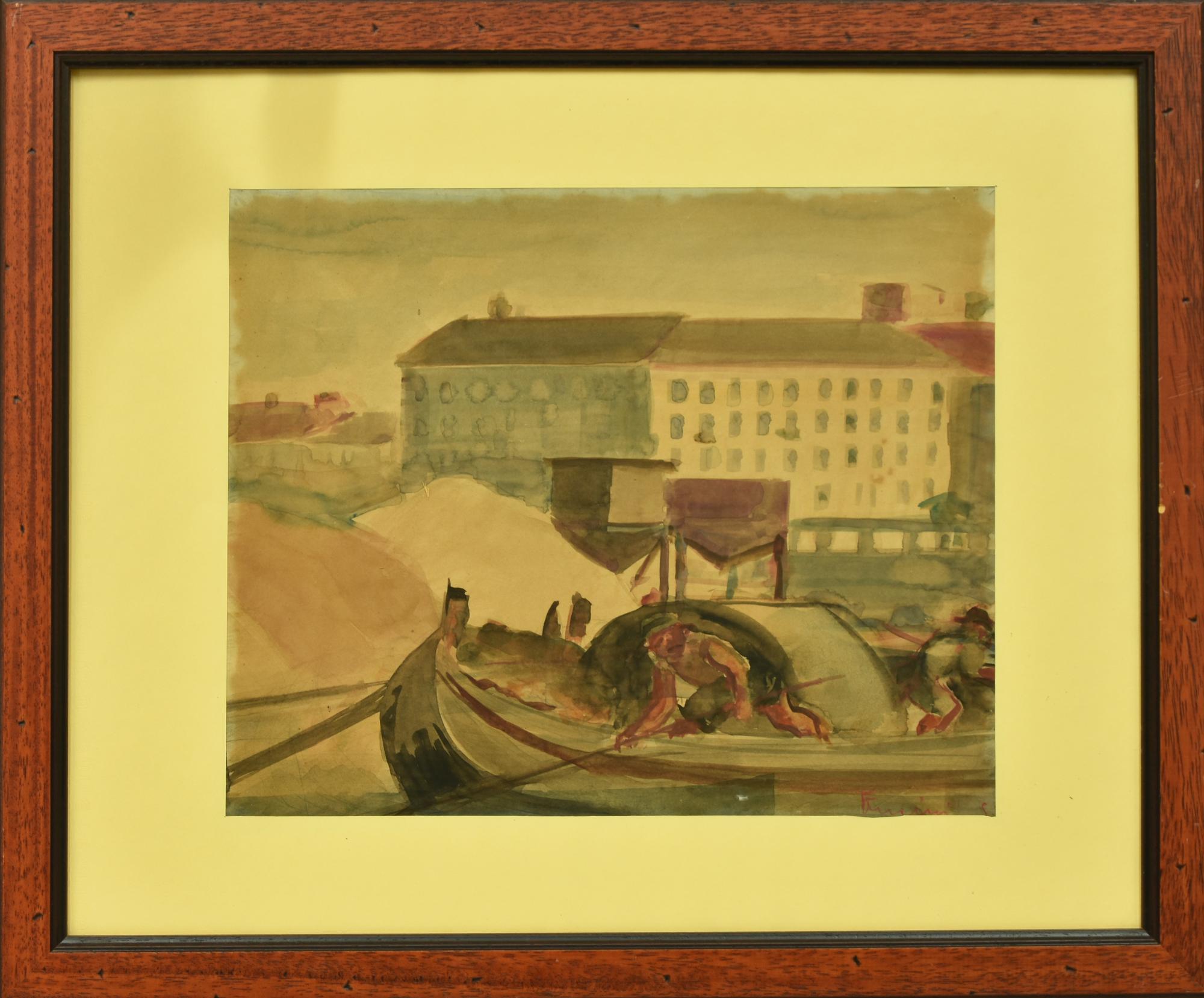 Mippia Fucini GONDOLIERI acquarello su carta, cm 28x35 firma e data eseguito...