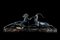 A 20th-century French deco-style green glazed metal alloy sculpture depicting a woman lying in front of an antelope, on black marble base. Signed Fayral and bearing Le Verrier Paris foundry mark (cm 65x25x15) (minor defects)