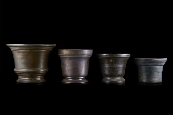 Collezione di quattro mortai in bronzo di epoche e fatture differenti (difetti)