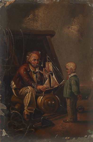 Ignoto del secolo XIX "Marinaio e fanciullo" olio su lamiera (cm 21,5x14) Al re