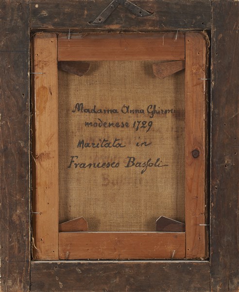 inscribed on the back ""Madama Anna Ghizzoni modenese 1729, maritata in Francesco Bassola""