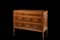 Cassettone lastronato in noce e legni vari a due cassetti e mezzo. Fronte, fian