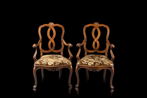 Pair of 18th-century Venetian walnut armchairs (defects)