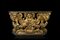 A 19th-century Emilian large wooden carved and gilded console with masks, leaves and berries. Faux marble lacquered top and base (cm 205x105x 59) (defects and breaks)