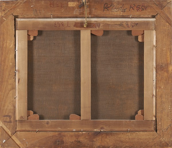 in antique carved and gilded wooden frame (defects and restorations)
