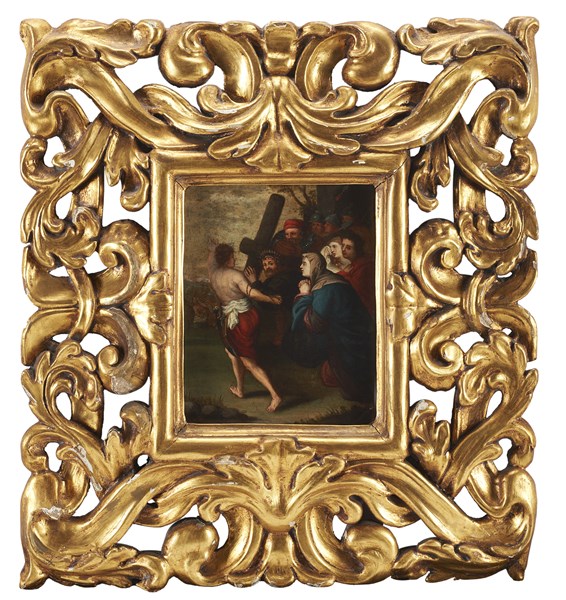 Scuola del nord Europa del secolo XVII Salita al calvario Olio su rame, cm 22x