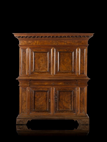 A 17th-century briar-root veneered walnut cabinet (cm 185x225x70) (minor defects)