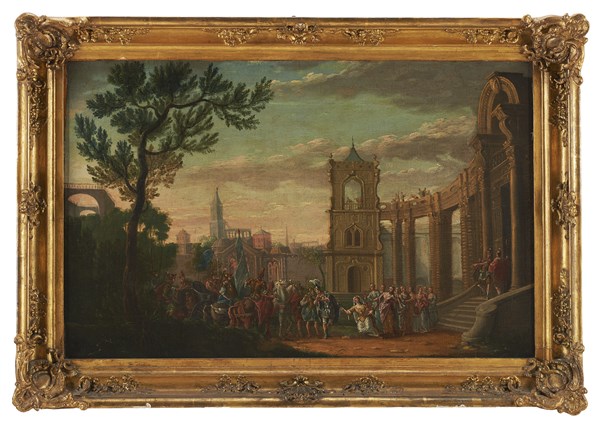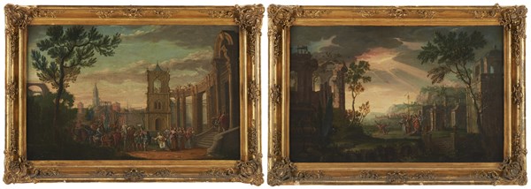 Mestro del nord Europa della fine del secolo XVIII Paesaggi con figure ed arch