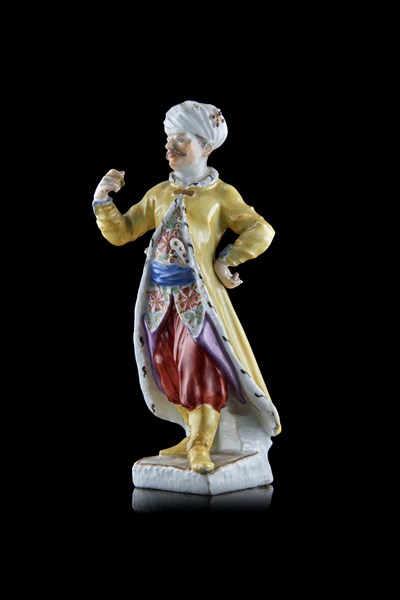 Manifattura di Meissen (attr) Figura di turco con turbante in porcellana dipint
