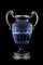 Manifattura di Boemia. Vaso biansato in cristallo molato trasparente incolore e blu. Base e ghiere in argento. Titolo 800 (h. cm 44) (lievi difetti)