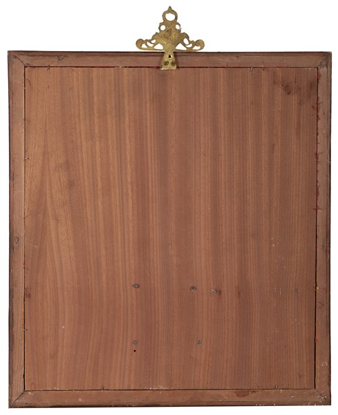 Arte siciliana, inizio secolo XIX "San Giovannino, San Zaccaria, Santa Elisabetta e due angeli" composizione in avorio su base in breccia con fregi in madreperla intagliata e traforata a foglie d'acanto. In cornice a teca lastronata in tartaruga (cm 40,5x44,5) (difetti)