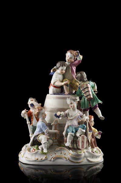 Manifattura di Meissen, secolo XIX "La vendemmia" gruppo in porcellana dipinta