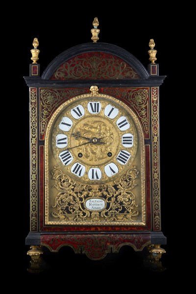 BALTAZAR MARTINOT. Pendola "religiosa" riccamente decorata ad intarsio del tipo