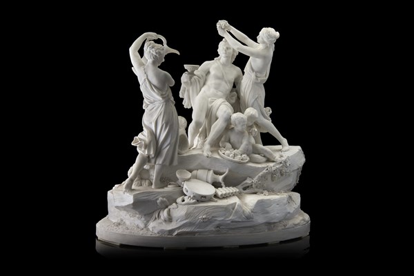 Artist of the 19th century "Triumph of Bacchus" biscuit group after L.S. Boizot (cm 43x40x30) (minor defects and restorations)