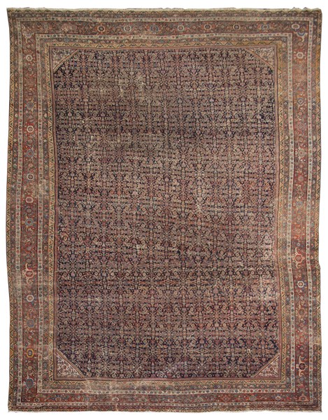Tappeto Mahal, Persia, seconda metà secolo XIX. Decoro Herati in policromia su fondo blu notte (cm 615x445) (difetti e vecchi restauri)