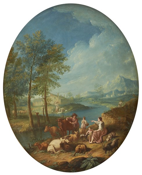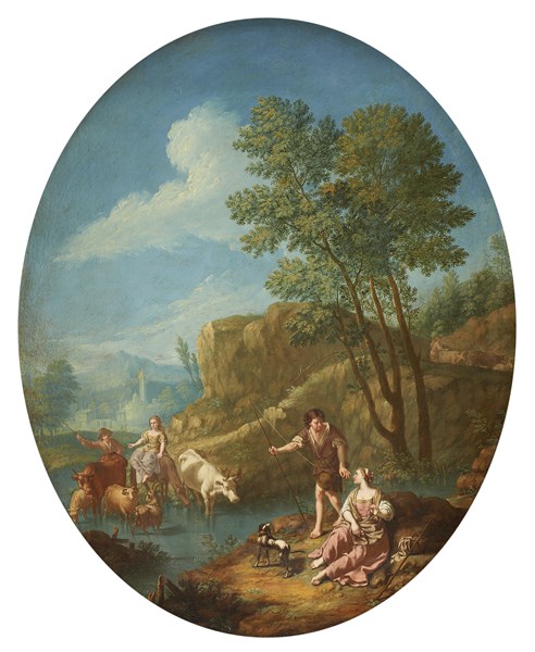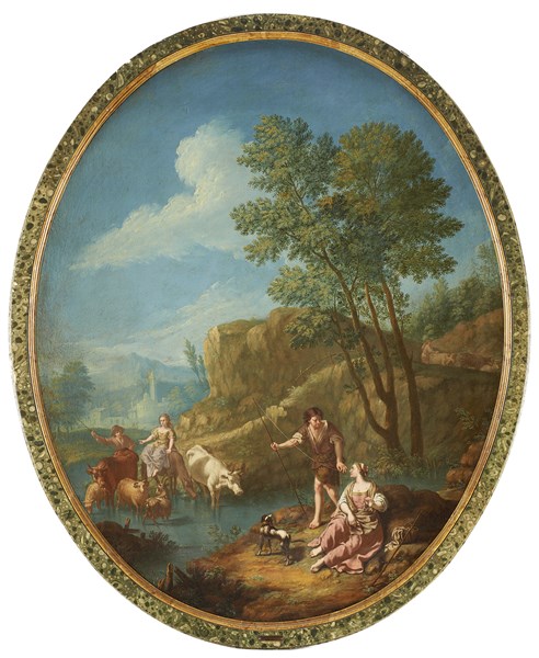 Paesaggi fluviali con figure e armenti