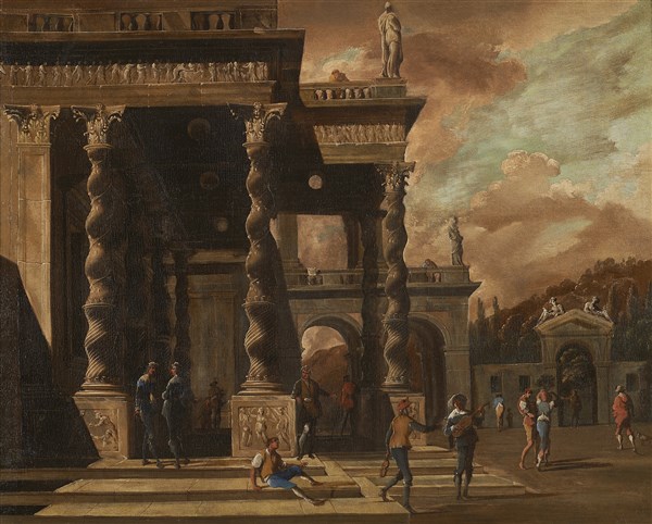 Capriccio con colonne tortili e figure